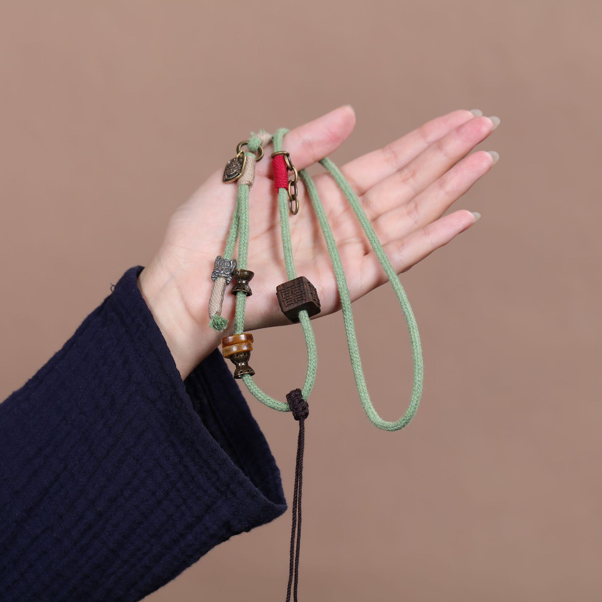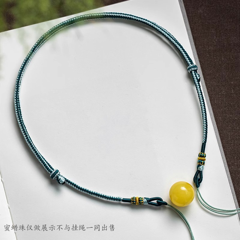 天珠横型ストラップ、調節可能な鎖骨チェーンロープ、蜜蝋転送ビーズ、中国風編みロープ、千里江山カラー