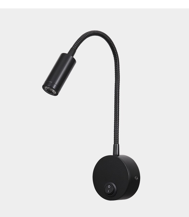 LEDフレキシブルウォールランプ ホテルベッドサイド グースネック読書灯 スイッチ付き 個性的な書斎寝室ランプ 表面取り付け壁画ランプ