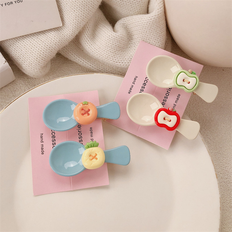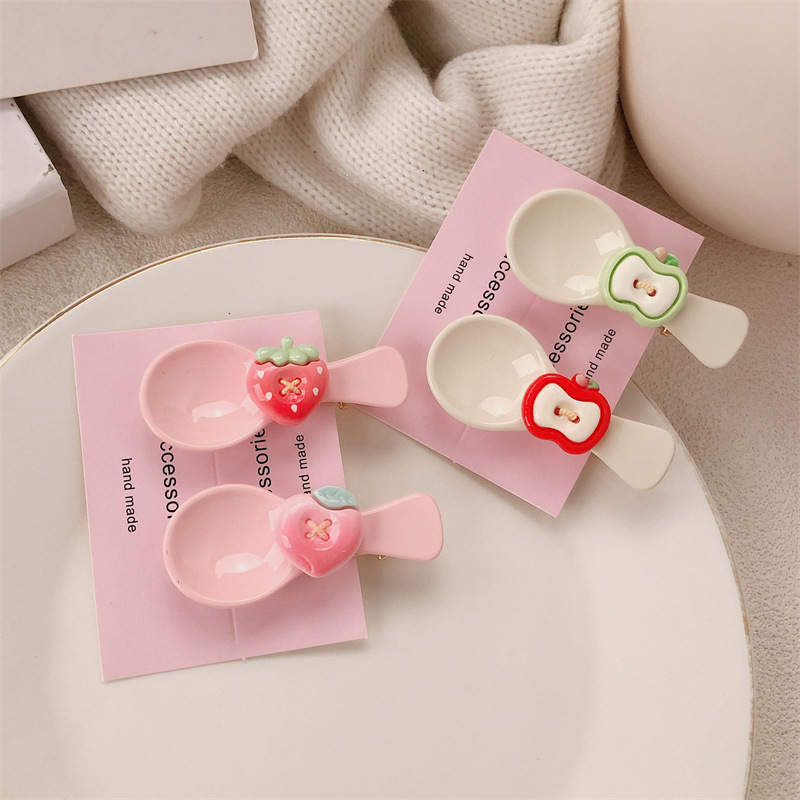 趣味水果草莓勺子发夹可爱百搭少女心碎发鸭嘴夹苹果侧边夹发卡