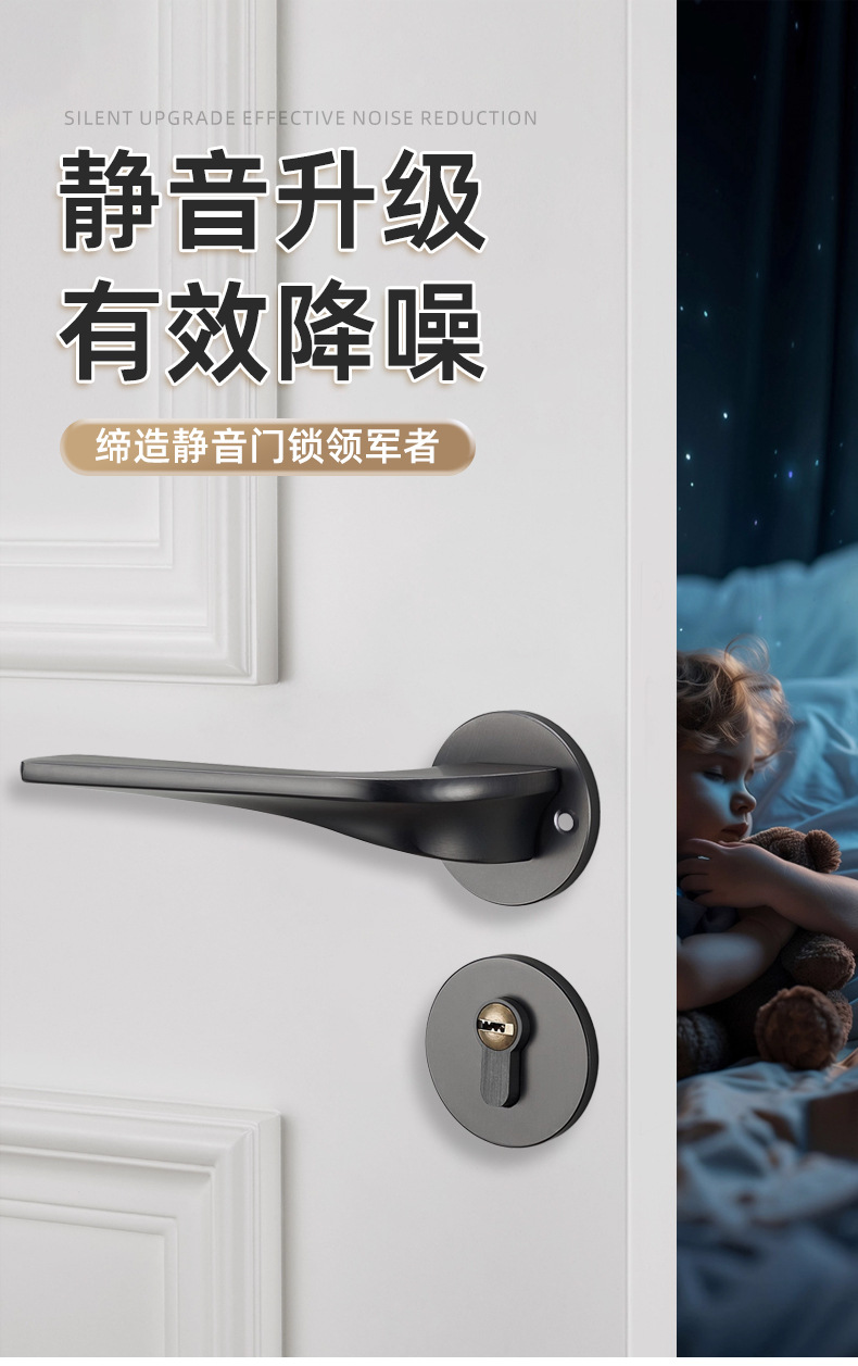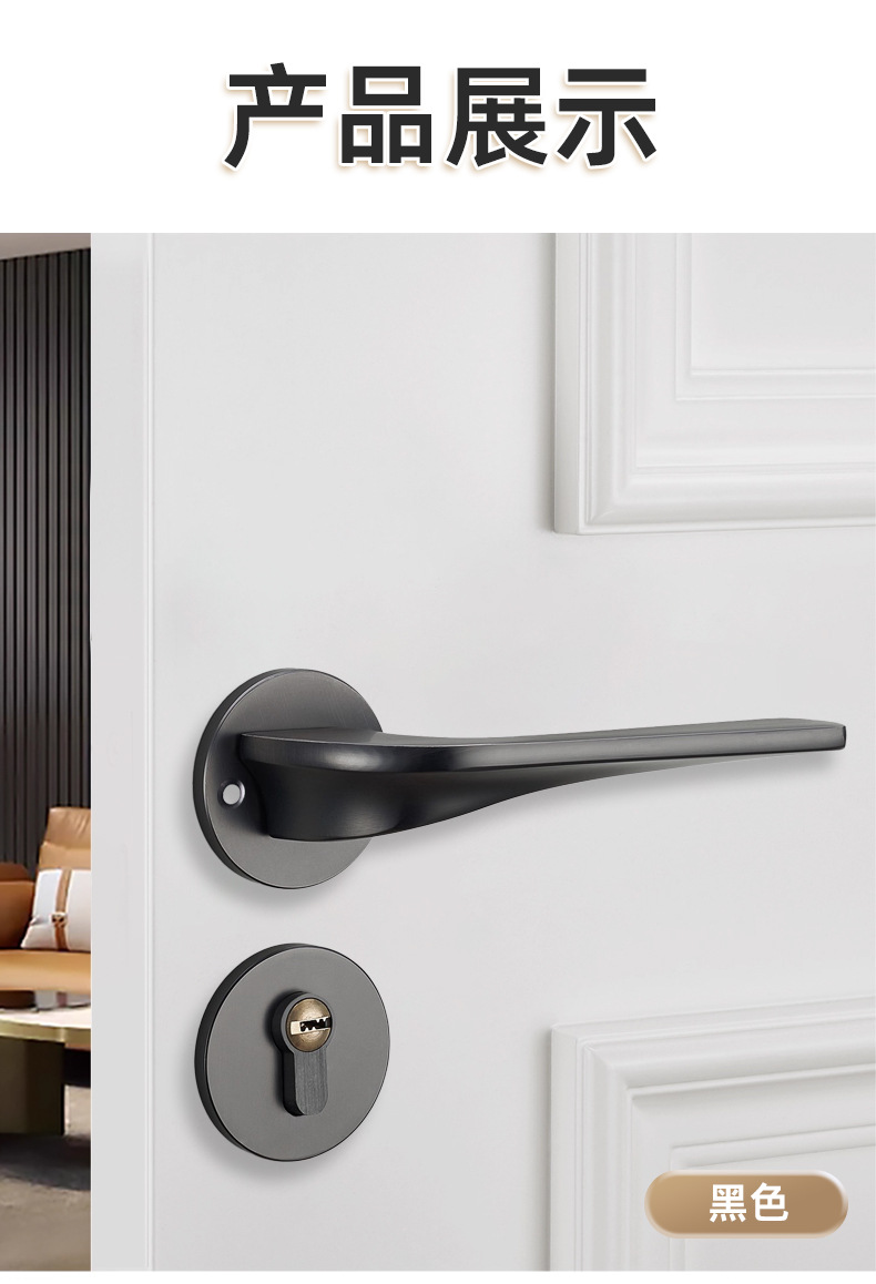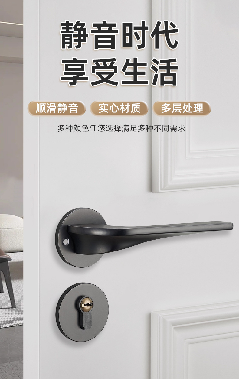 ブラックグレードアロック、室内ドアロック、寝室ドアロック、磁気サイレント分割ドアハンドル、盗難防止ドアロック