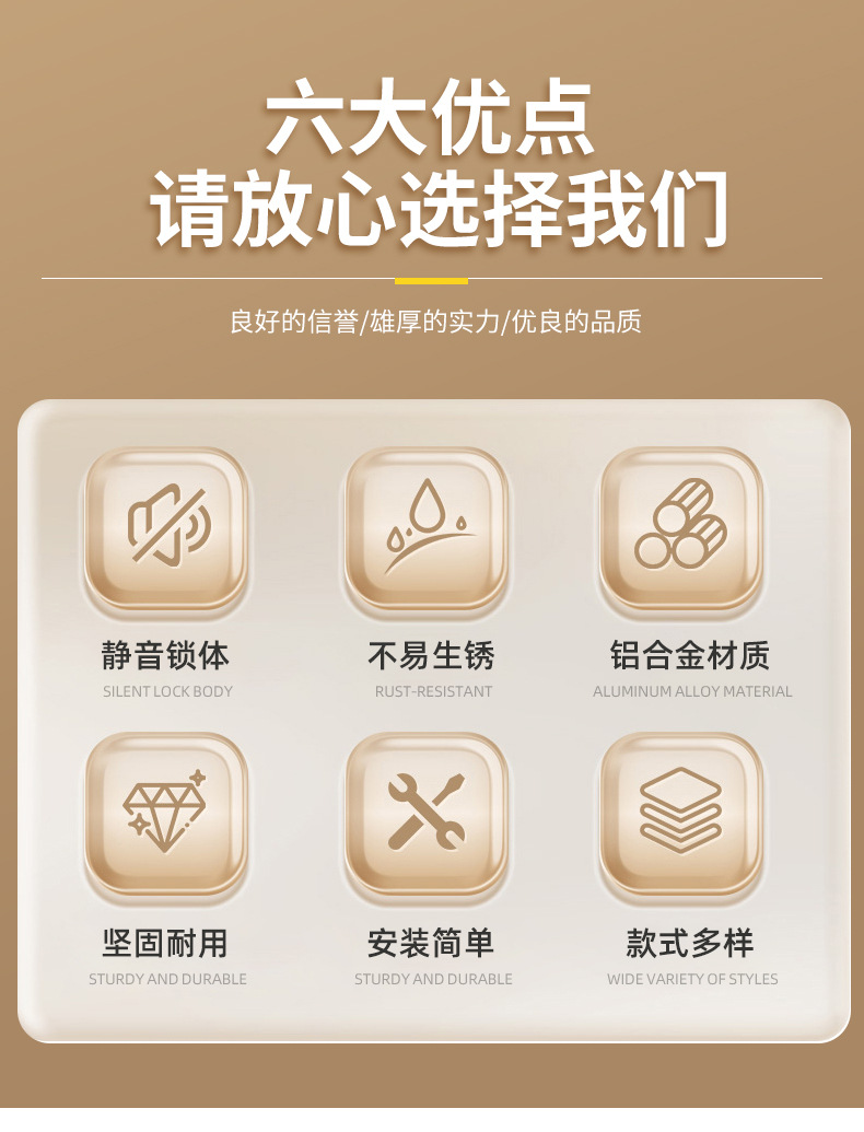 新中式黄古铜色家用室内卧室门锁磁吸静音分体铝合金房间木门把手