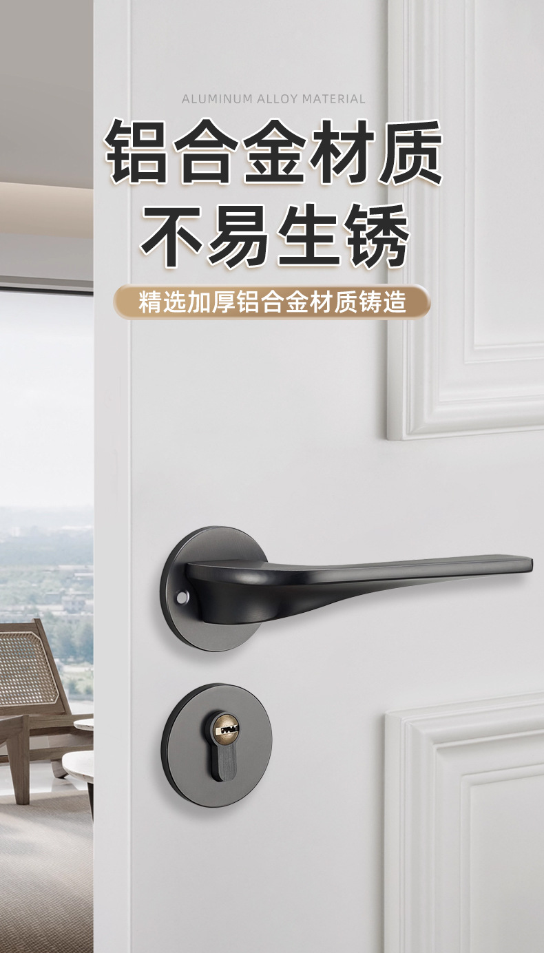 工場直販アルミ合金黒屋内オフィス寝室浴室ドアロック分割サイレント木製ドアドアロック
