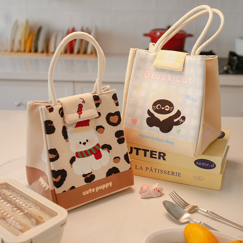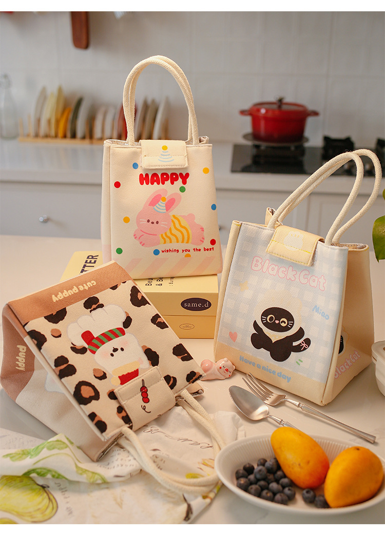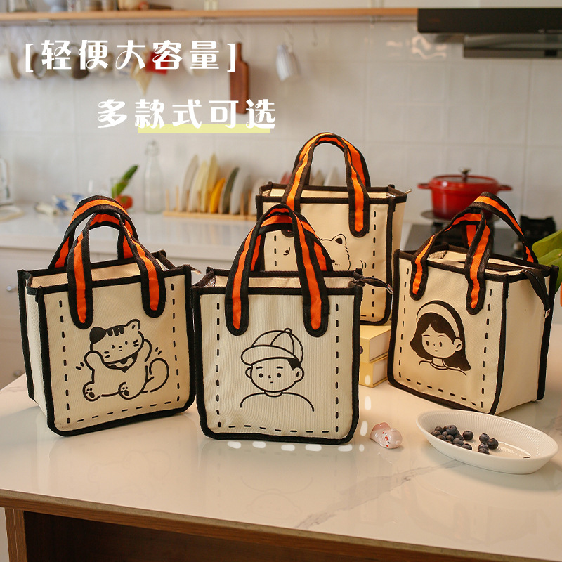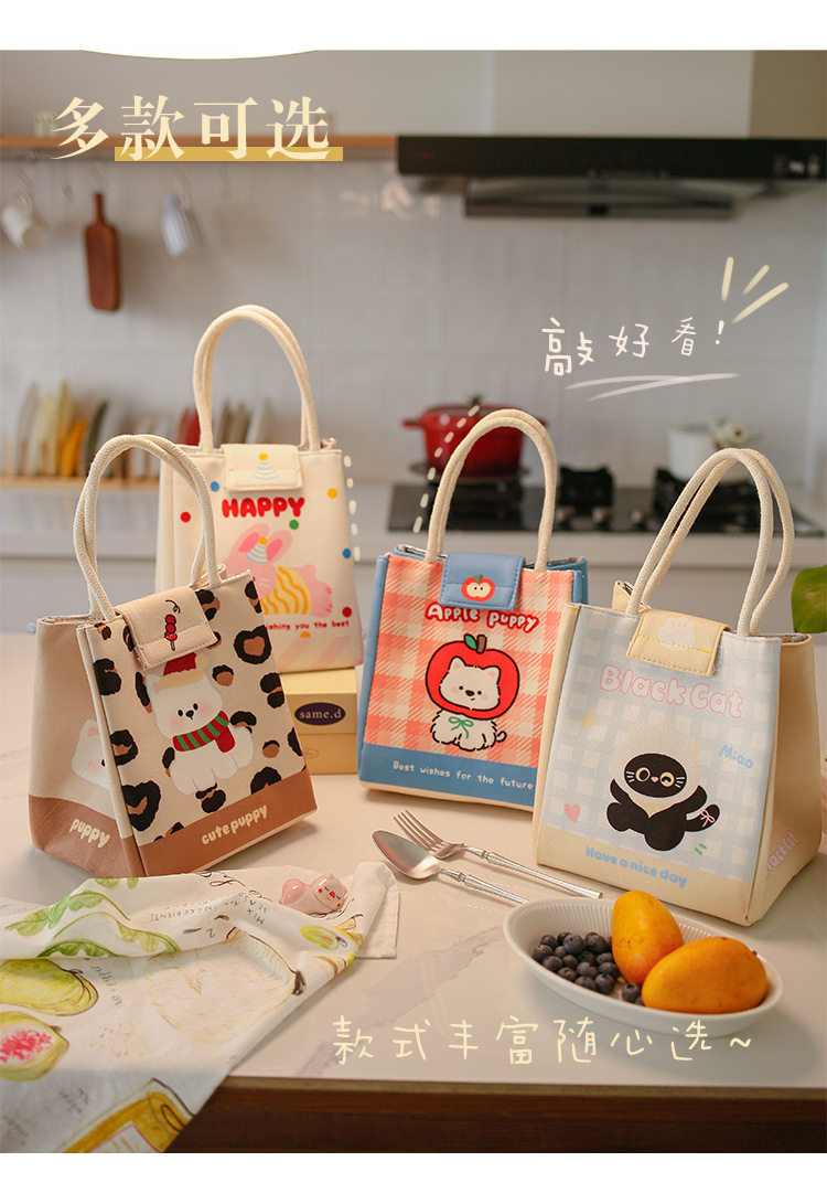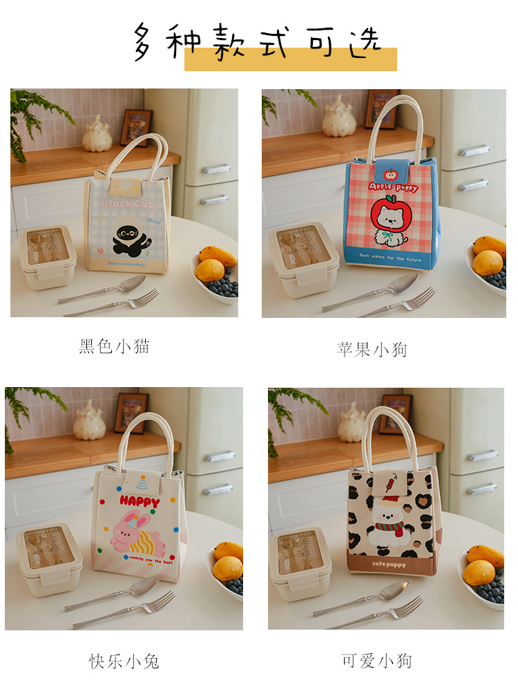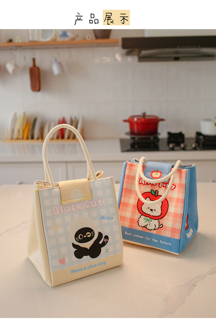 萌趣翻盖保温包便当上班族大容量手提袋保鲜袋餐盒学生饭盒批发