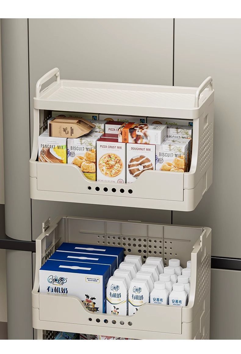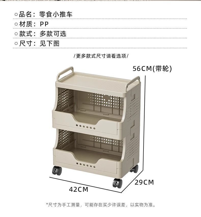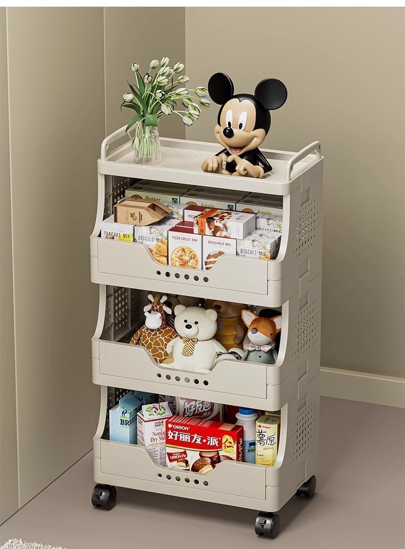 可折叠收纳框置物小推车家用零食玩具夹缝多层办公室奶油风储物架