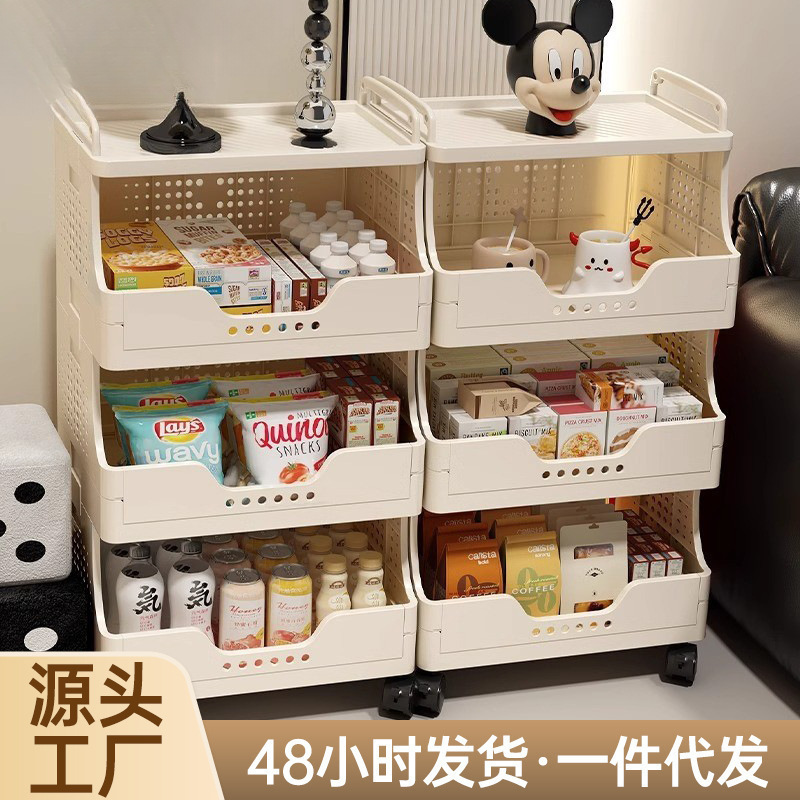 大容量収納ラックトロリースナック収納ラック床置き多層リビングルーム整理ラック車輪付きモバイル収納ラック