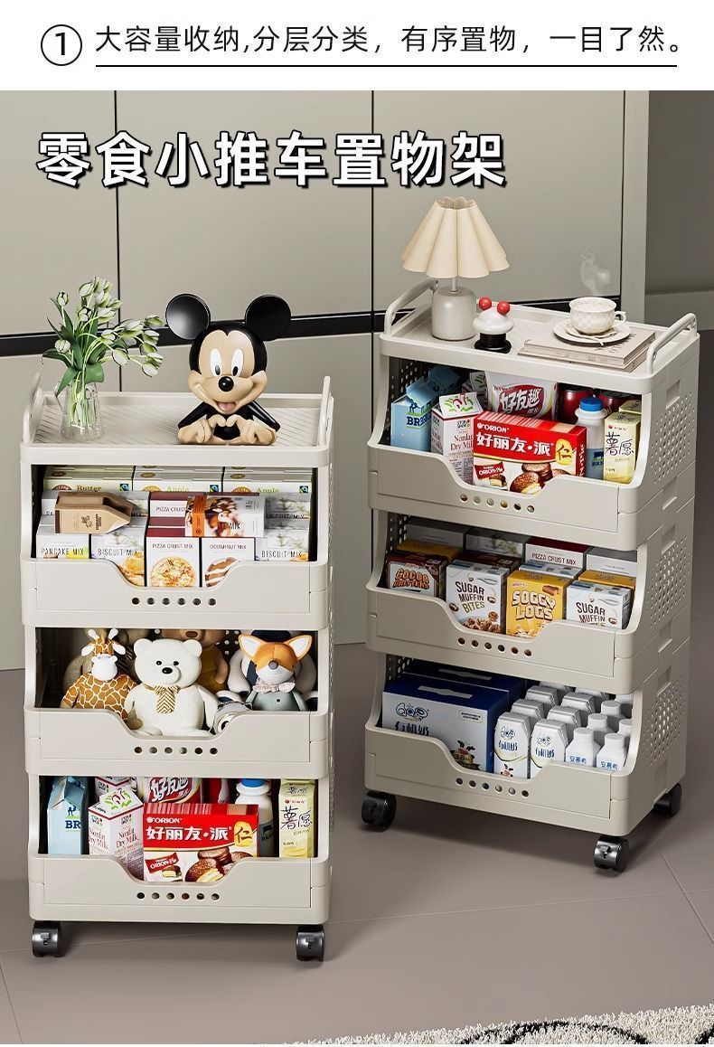 加厚落地小推车零食置物架多层收纳架客厅卧室大容量收纳整理移动