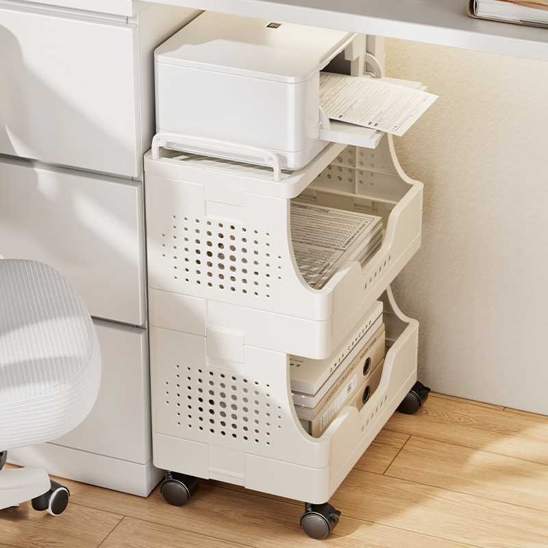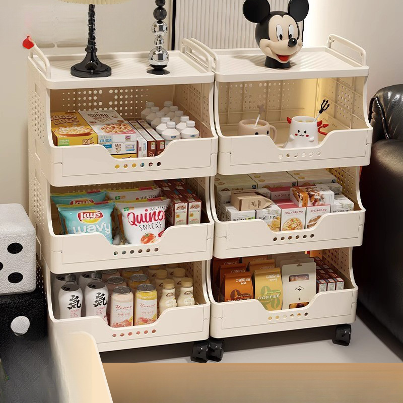 収納トロリー家庭用スナックおもちゃサンドイッチ折りたたみ収納ボックス多層オフィス収納ラッククリームスタイル