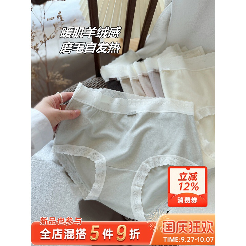 暖肌裤秋冬磨毛德绒女士内裤无痕蕾丝边舒适中腰三角裤裆包臀