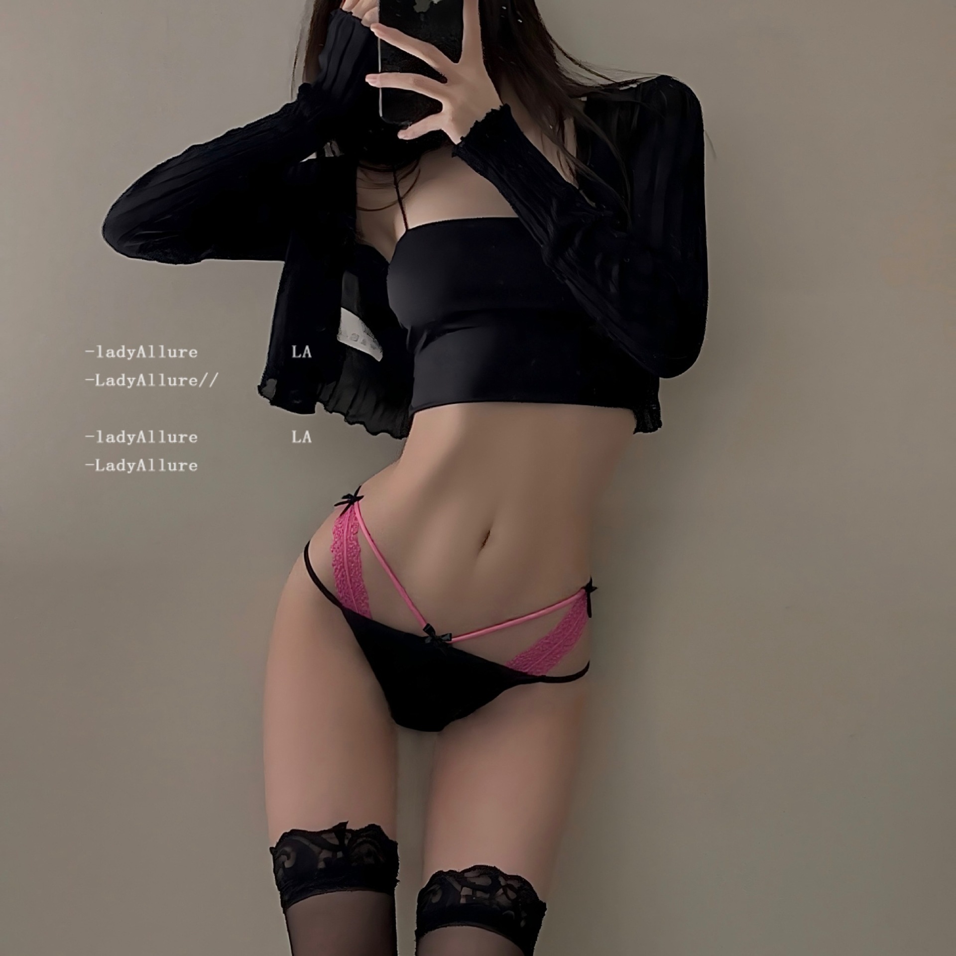 紫色の魅力〜女性用のフロントにセクシーなレースと背中に中空のリボンが付いたフレンチピュアディザイアのローウエスト薄手でシースルーなパンティー