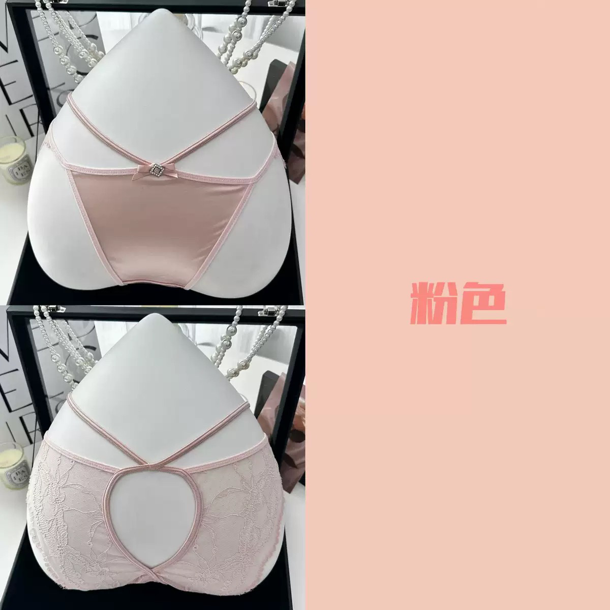 2025小钻法式蕾丝内裤女低腰甜美包臀棉档透气缎面舒适三角裤粉色