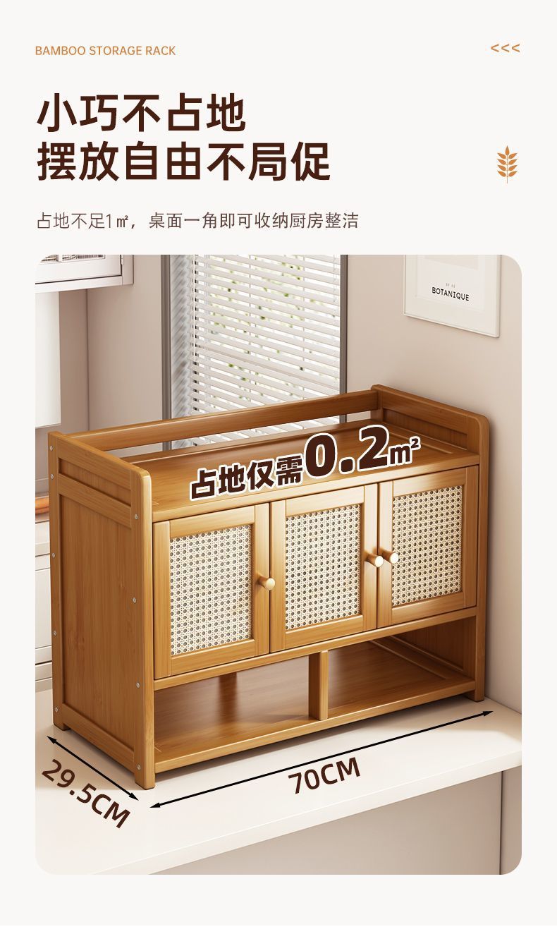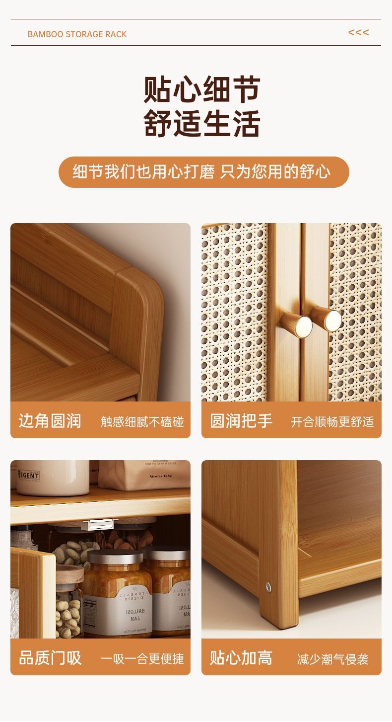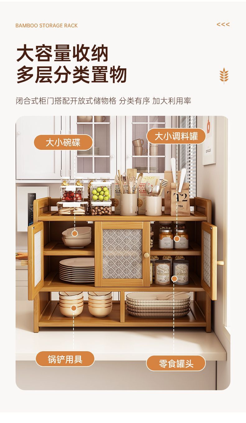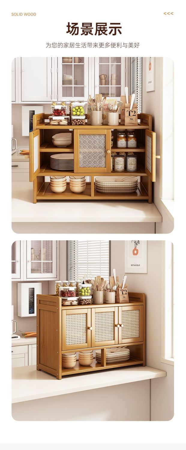 带抽屉桌面置物架仿藤编翻门家用茶水间多层杯架餐边柜实木置物架
