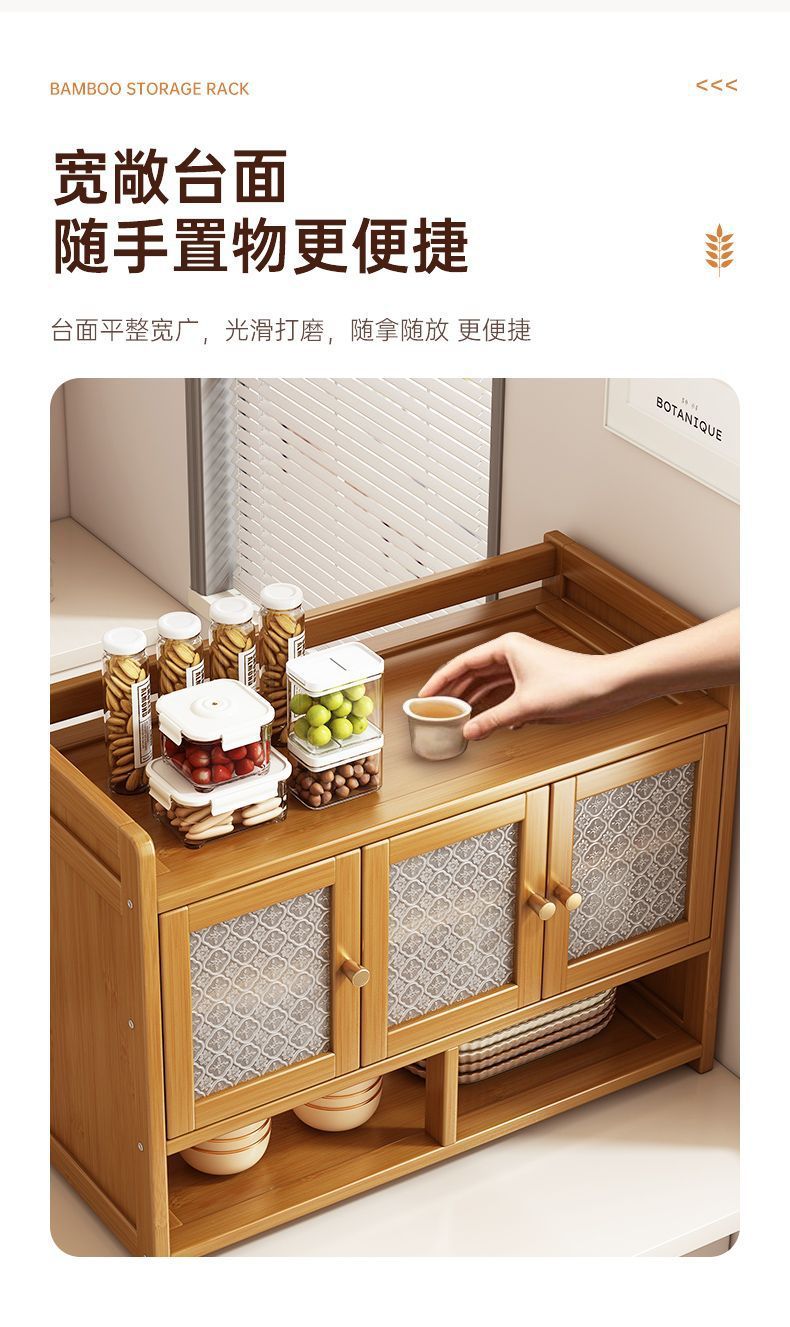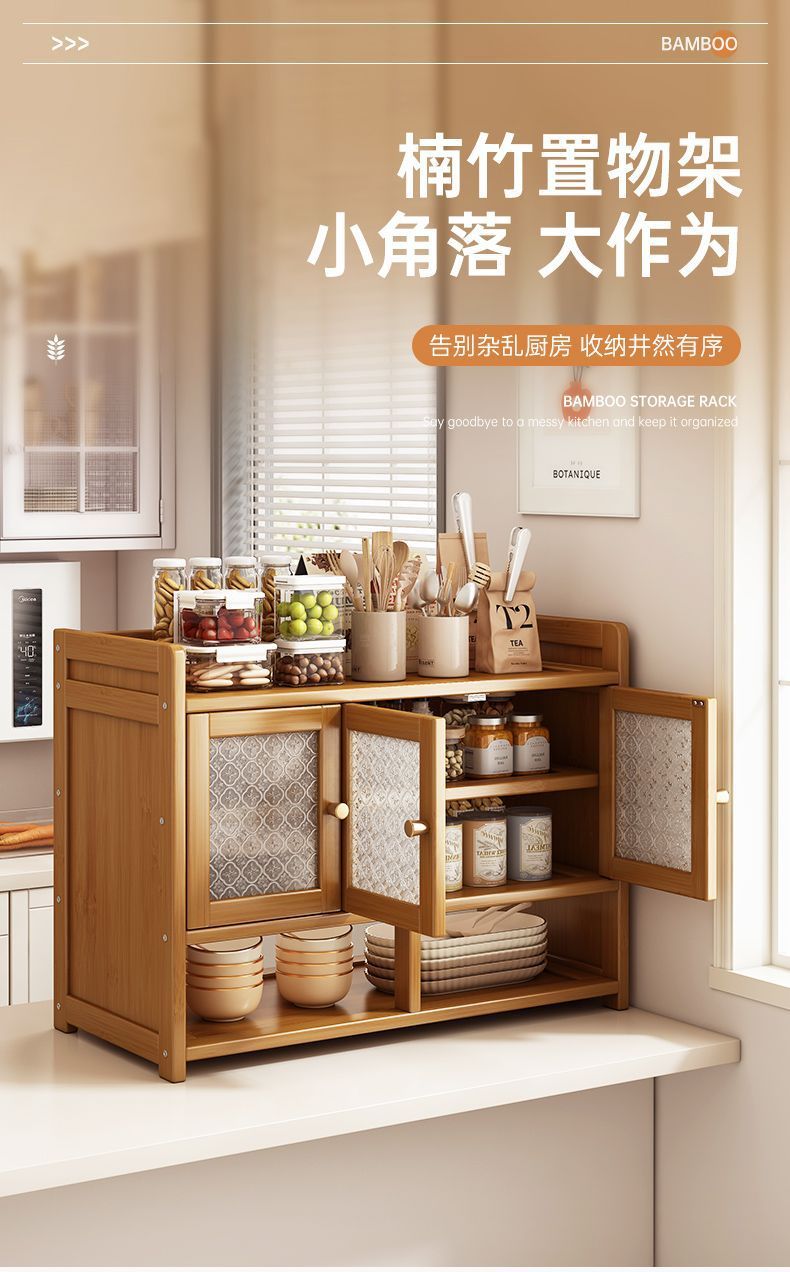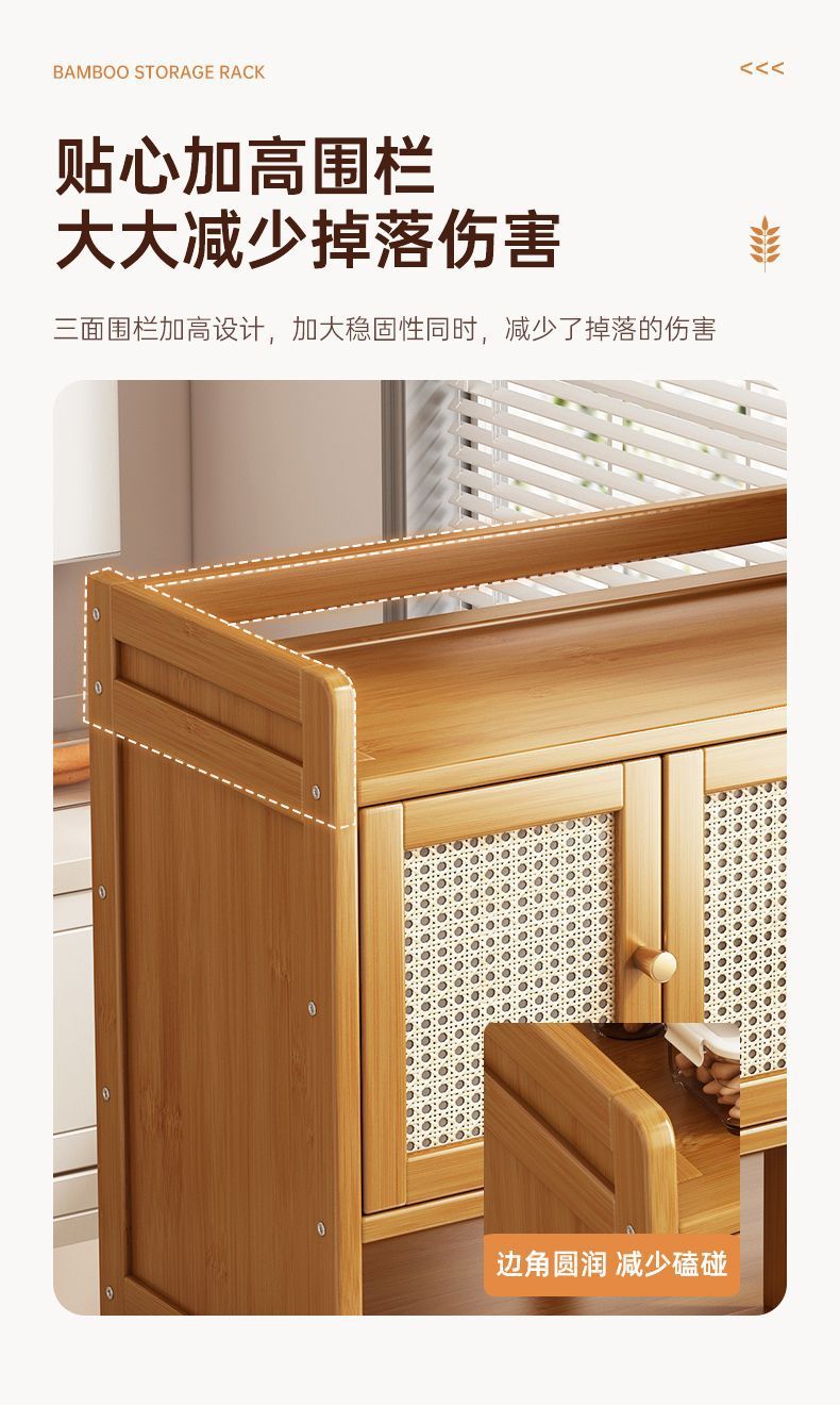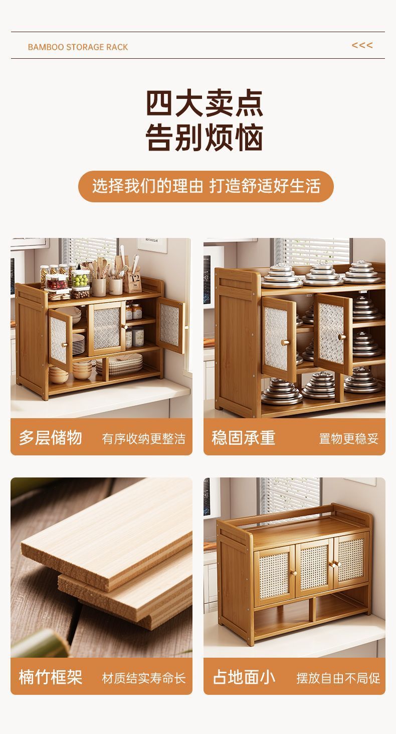 带抽屉桌面置物架仿藤编翻门家用茶水间多层杯架餐边柜实木置物架