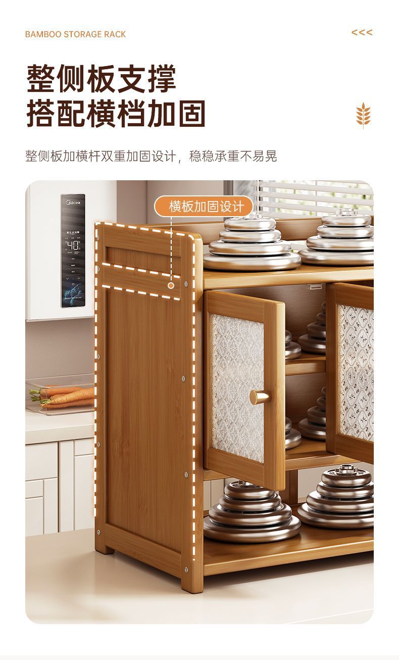 厨房餐边柜客厅侘寂风多层防尘落地台面靠墙储物柜北欧风碗橱柜