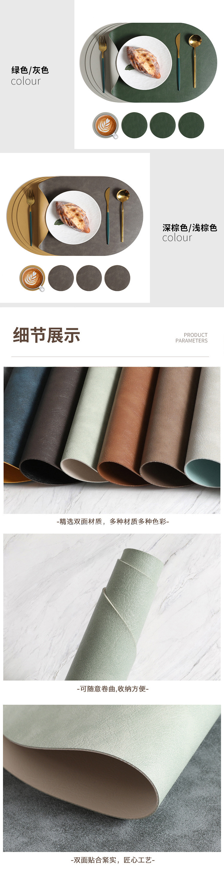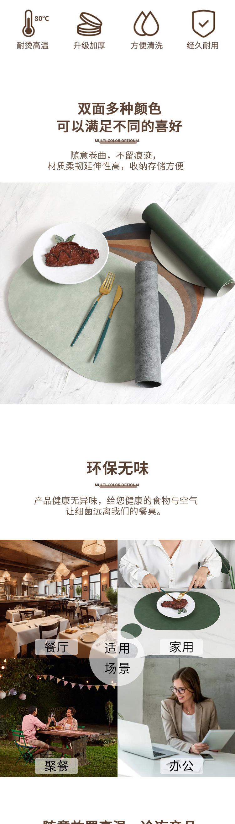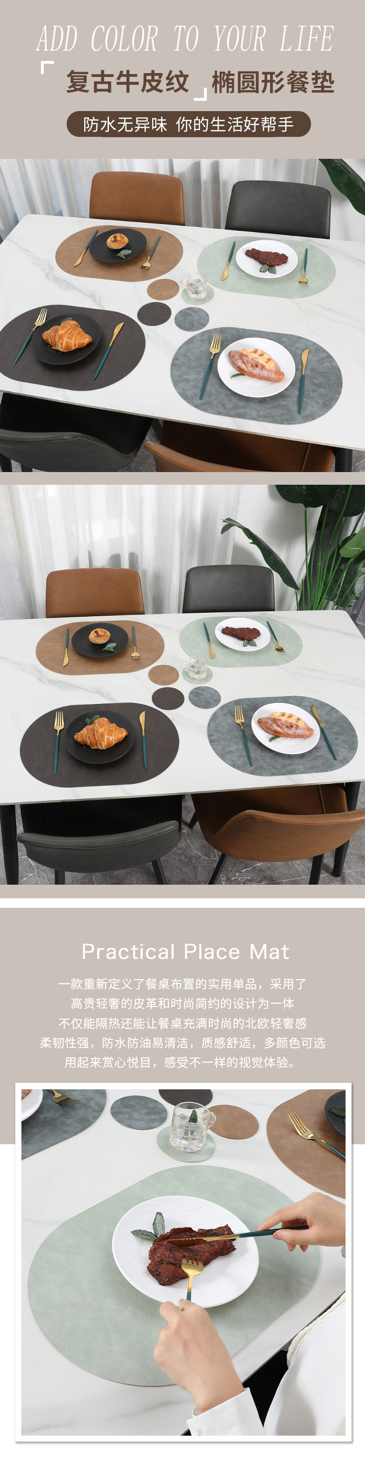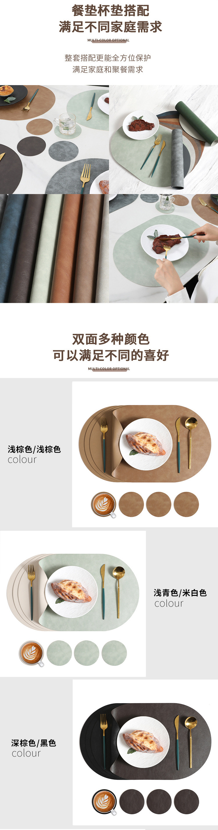 椭圆形圆形双面牛皮纹PU皮革垫高级感西餐盘垫防烫保护桌面易清洗
