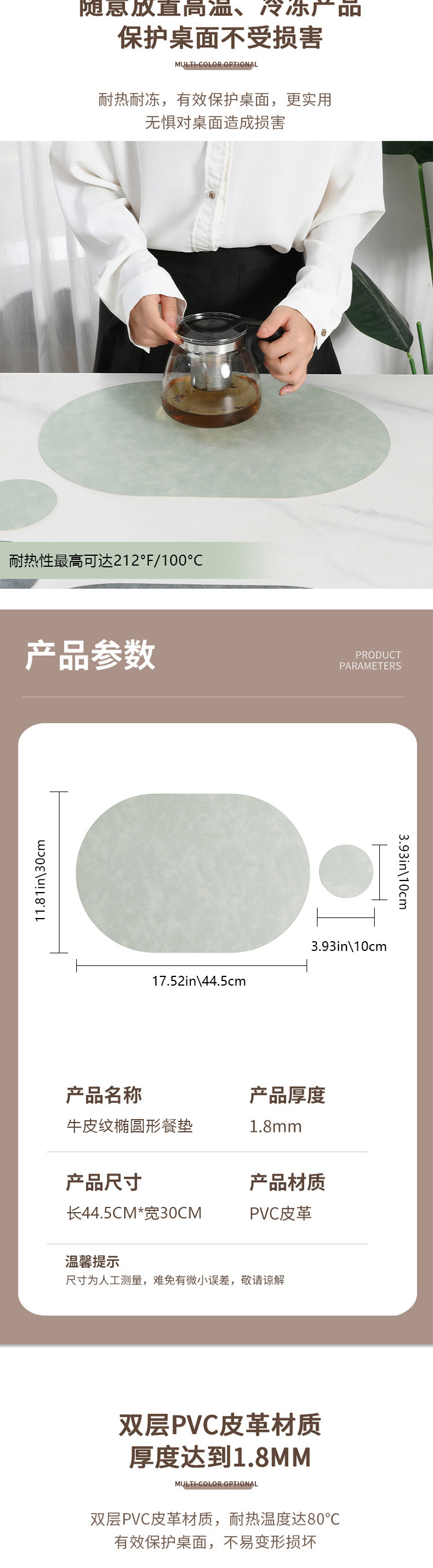 规格 45*30cm椭圆形餐垫,10cm圆形杯垫