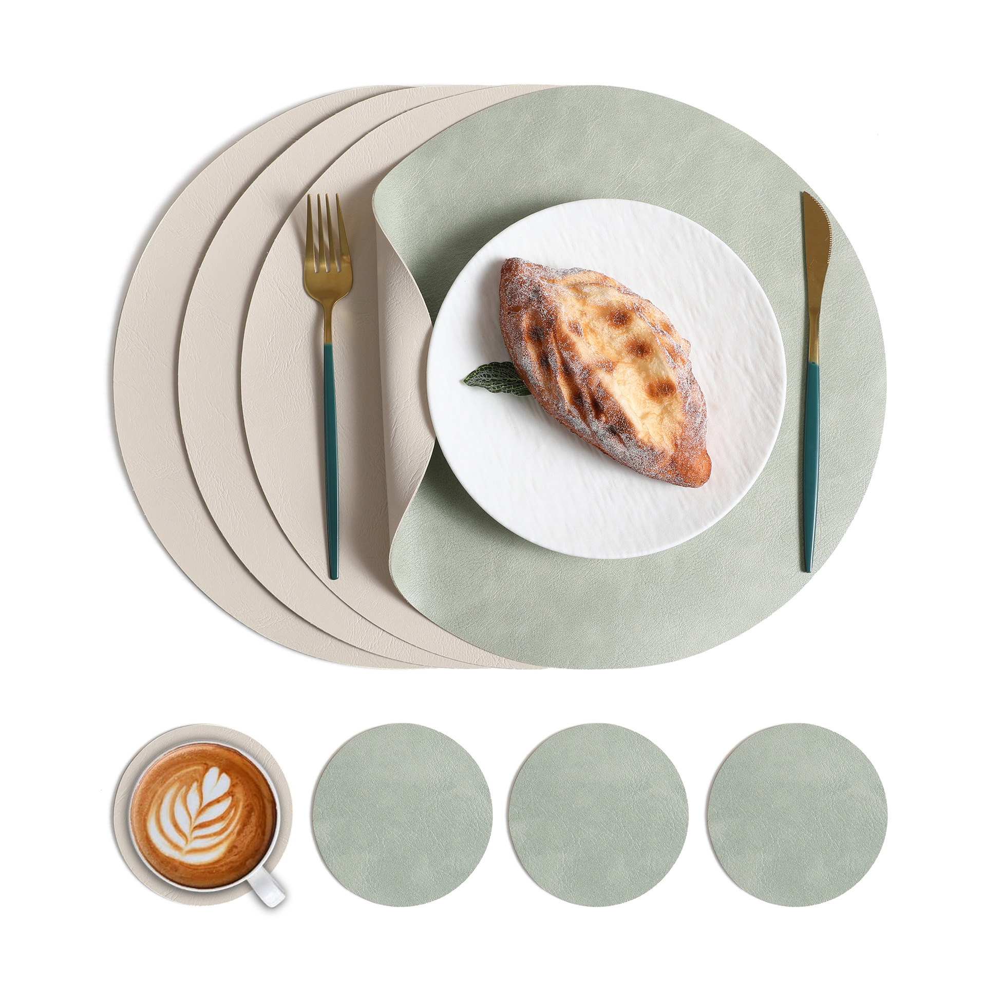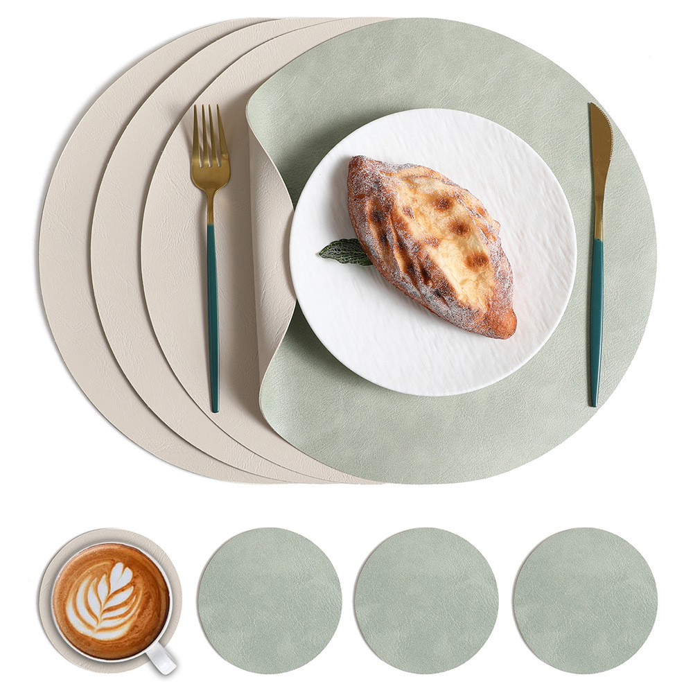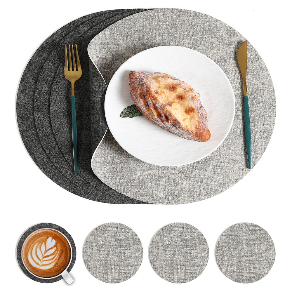 亚马逊北欧ins布纹皮革餐垫双色圆形餐桌垫防烫隔热垫高级感盘垫