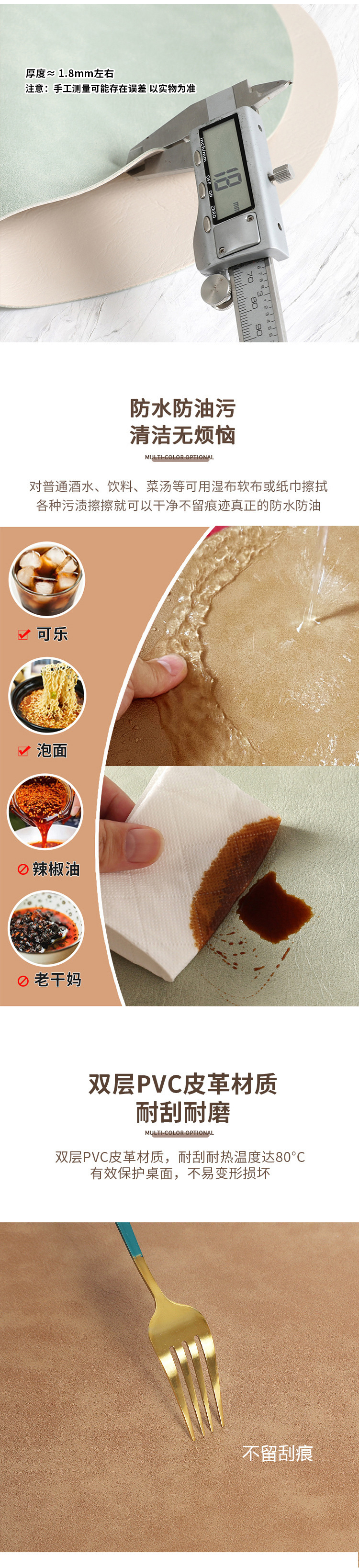 跨境双面荔枝纹皮革餐垫餐厅高档西餐垫防烫隔热垫防水防油餐桌垫