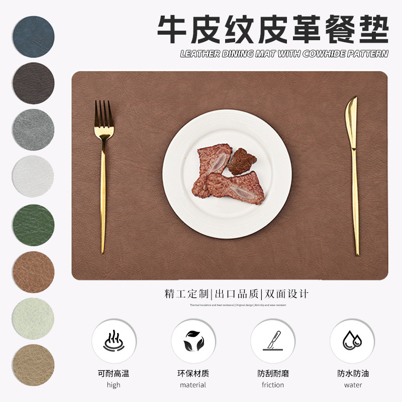 跨境爆款皮革餐垫双面方形牛皮纹西餐垫加厚防油家用餐桌垫批发