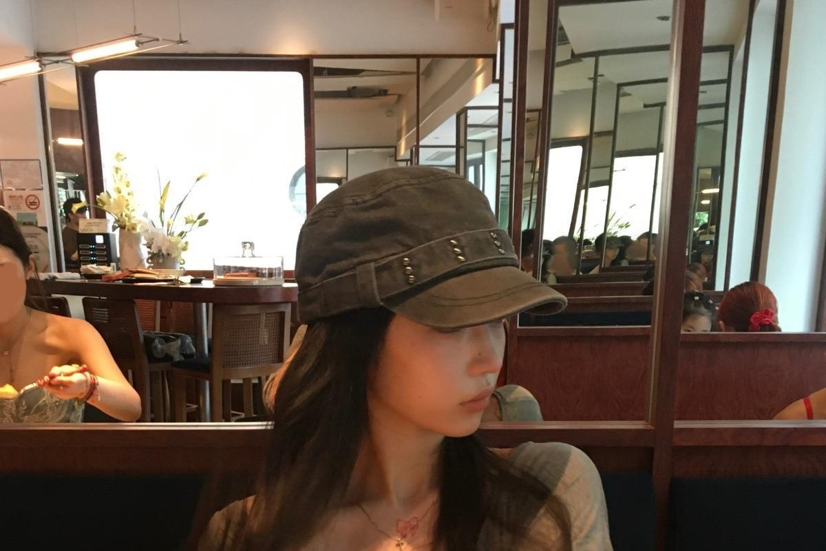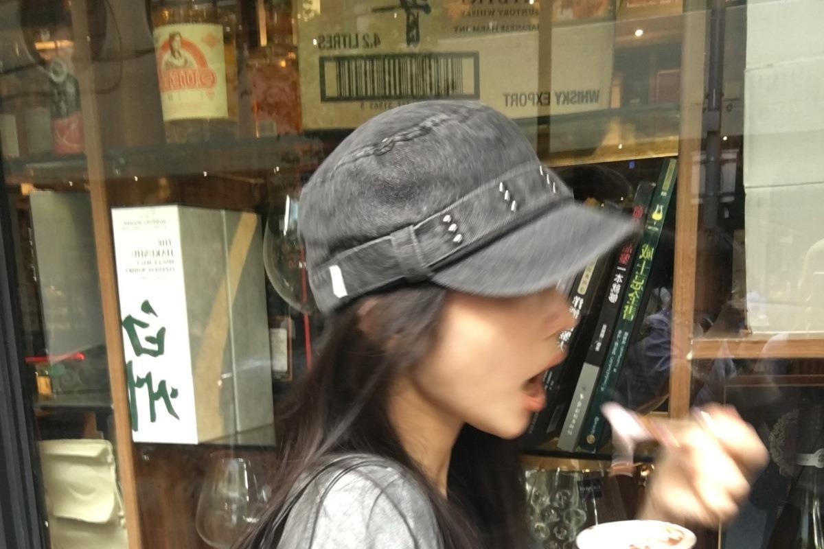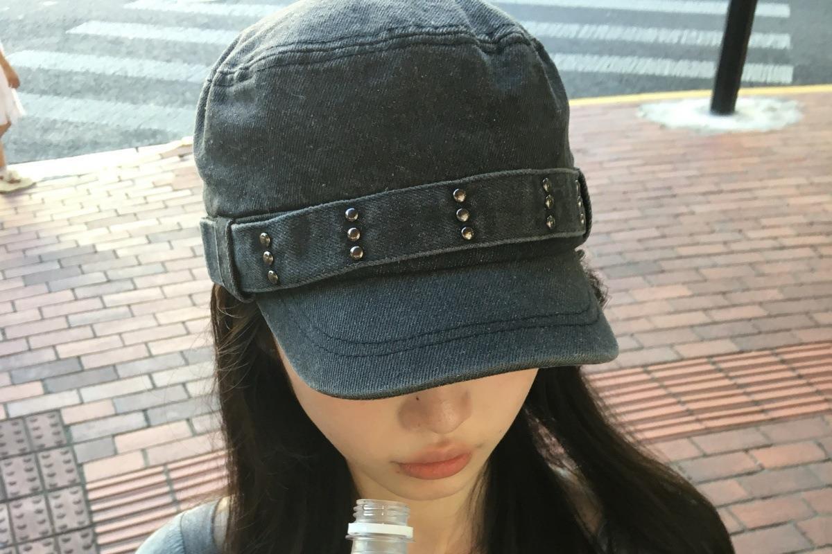 秋冬新作レトロデニムフラットトップひさしキャップウォッシュ加工オールマッチングニッチリベットビッグヘッドハット