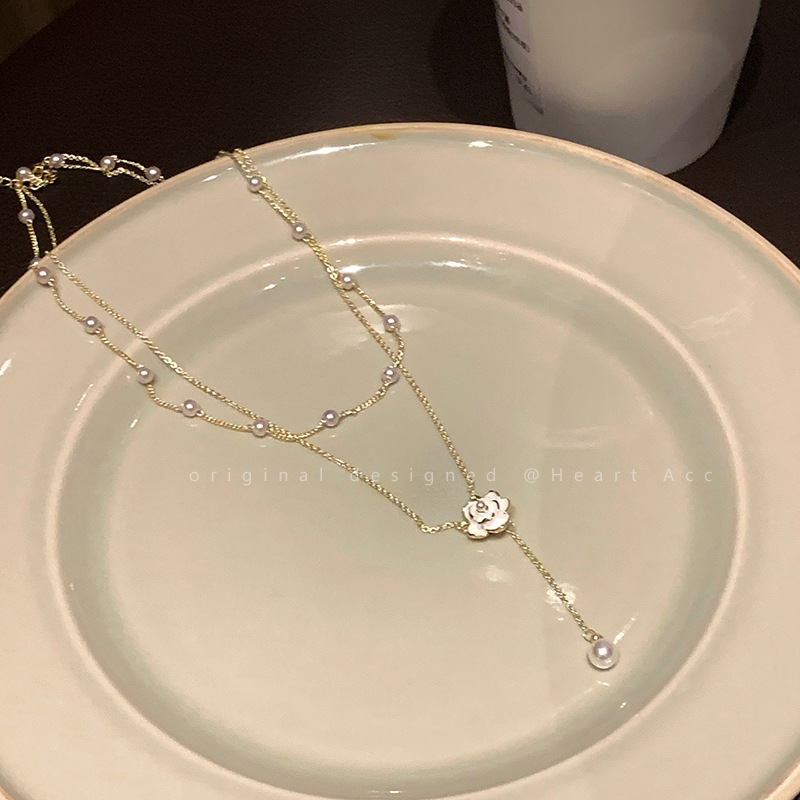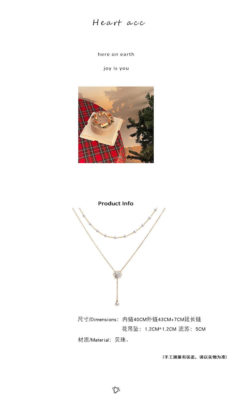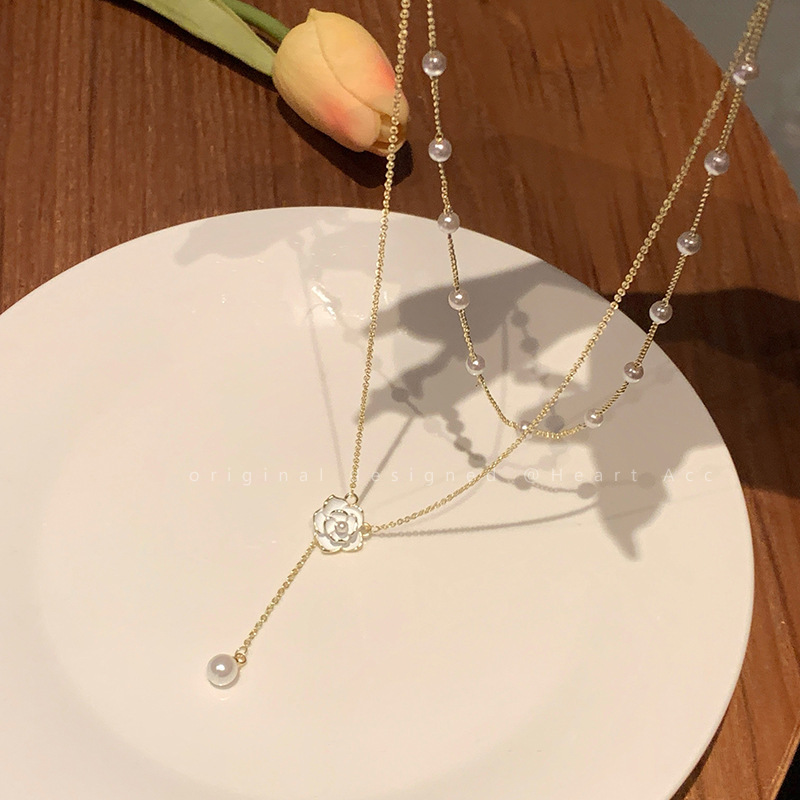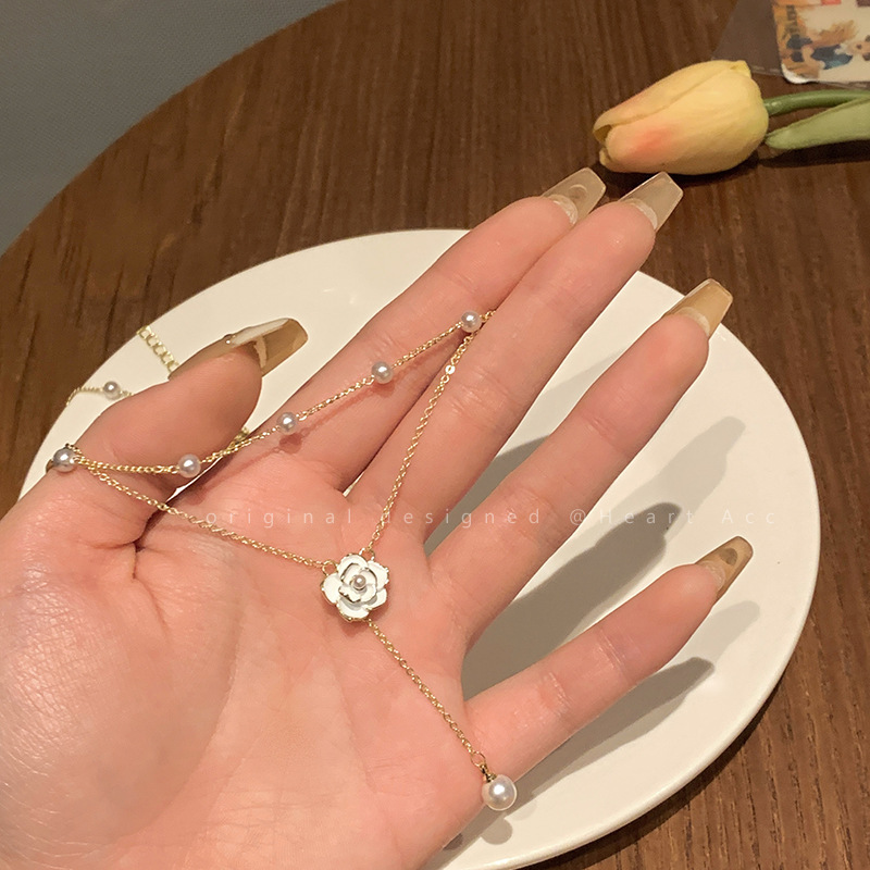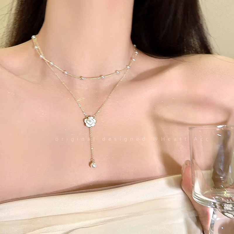 超仙优雅珍珠山茶花双层项链女轻奢高级感气质锁骨链时尚叠戴配饰