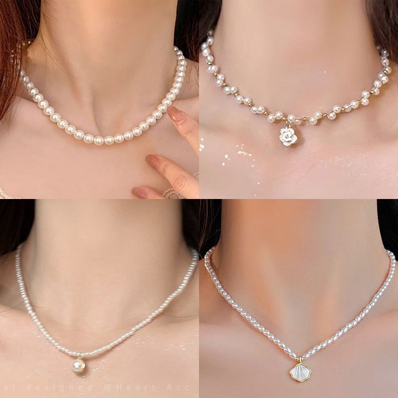 女性用フレンチパールネックレス、トレンディでクールなスタイル、女性用二層レトロ鎖骨チェーン、ハイエンド、ライトラグジュアリー、ニッチネックレス
