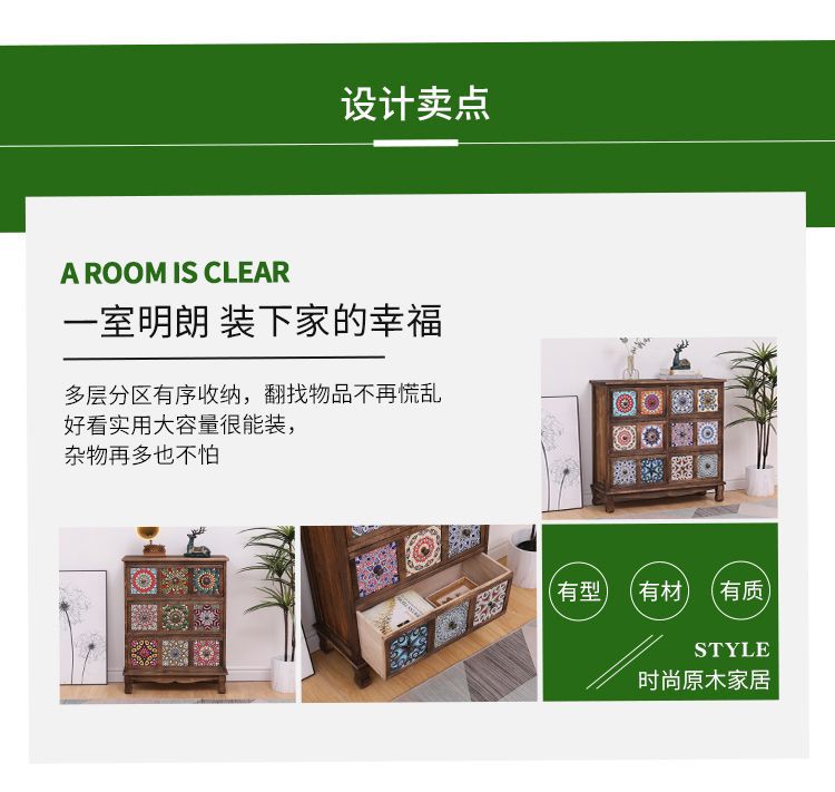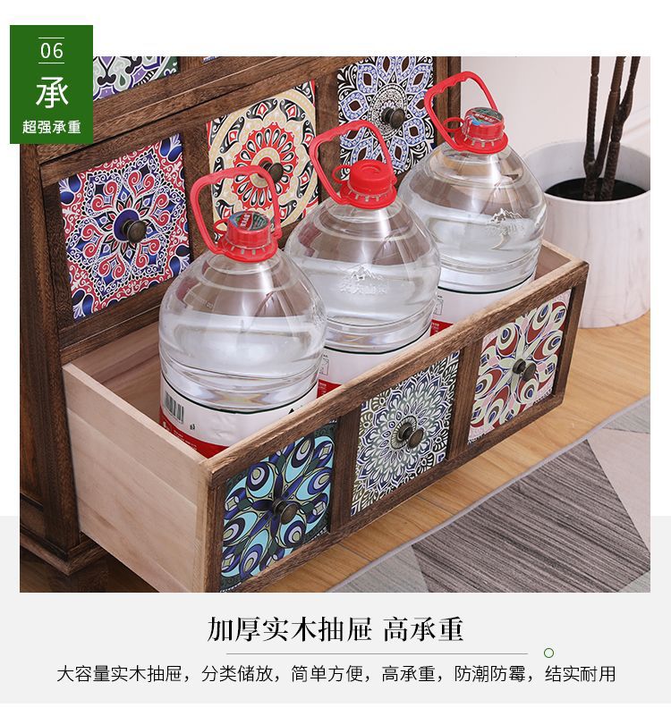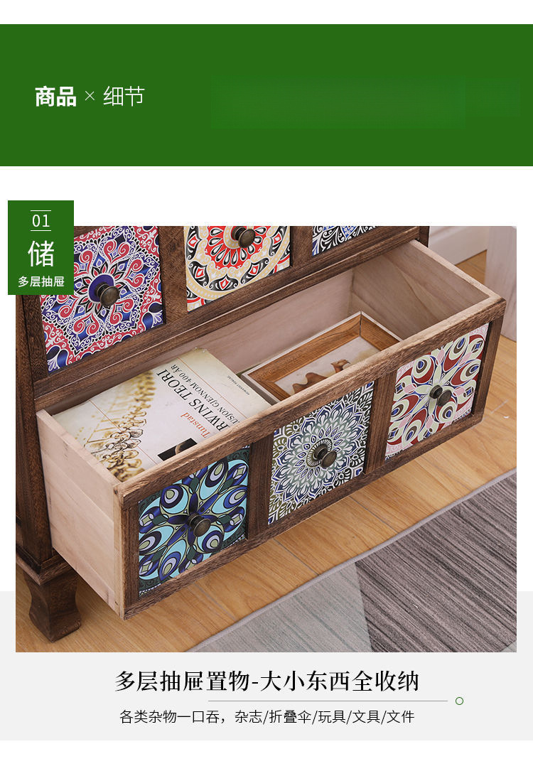 アメリカン無垢材収納キャビネット、レトロなリビングルームのダンスキャビネット、多層収納キャビネット、シンプルな塗装引き出し型収納キャビネット、バルコニー