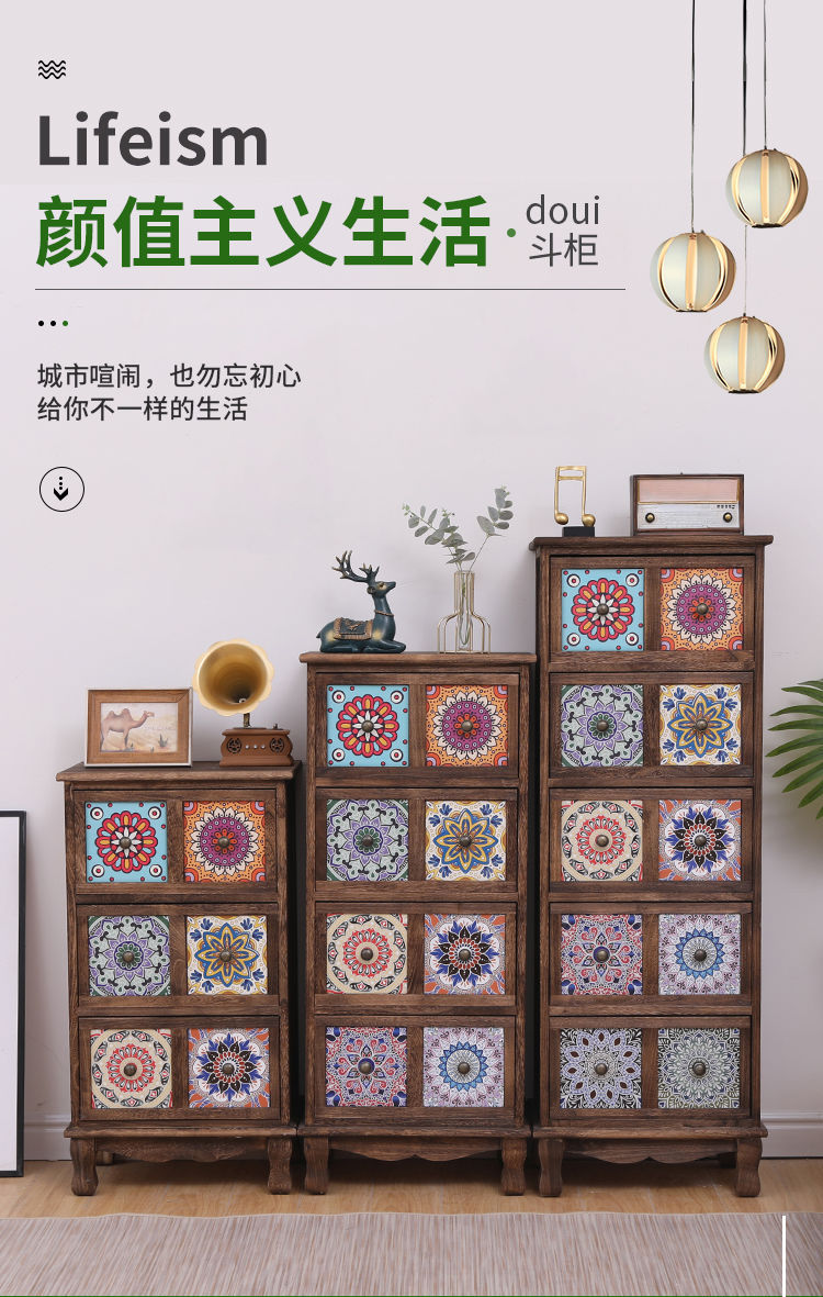 アメリカ式の木の斗のタンスの引き出し式の収納棚の客間のロッカーのベランダの多層の物置棚の寝室の彩色絵聯厳
