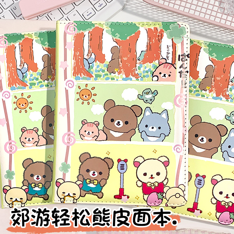 おでかけリラックマ A5 カラー ページ レザー カバー 漫画ノート 自虐クマ レザー メモ帳 学生日記