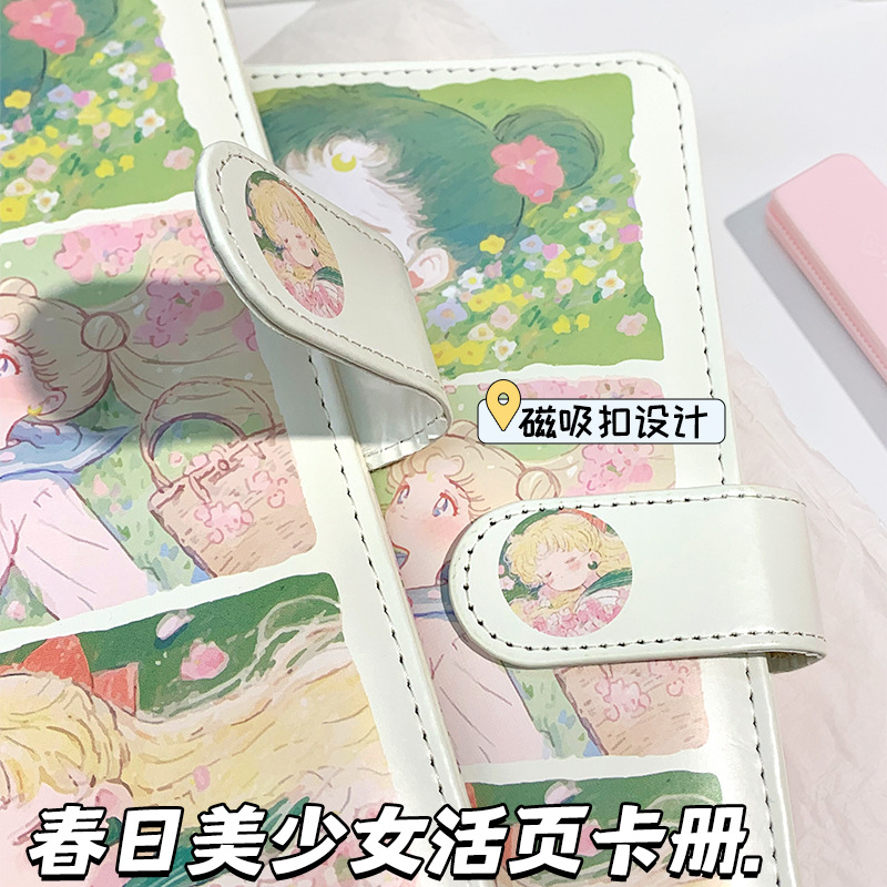 春の美少女 A5 ルーズリーフカードブック取り外し可能なレザーノートブック美しい空白のハンドブックメモ帳学生