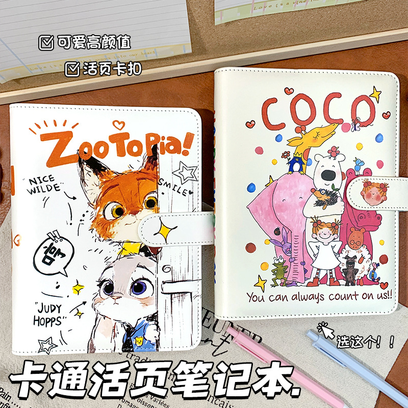 新款卡通疯狂动物城可拆卸a5PU活页本笔记本小红书同款可爱记事本