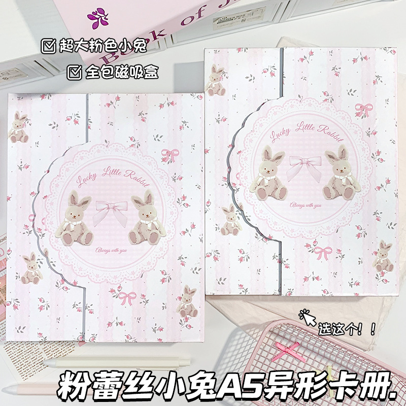 粉蕾丝小兔A5异形卡册明星爱豆小卡收纳册硬壳四宫格活页收集册本