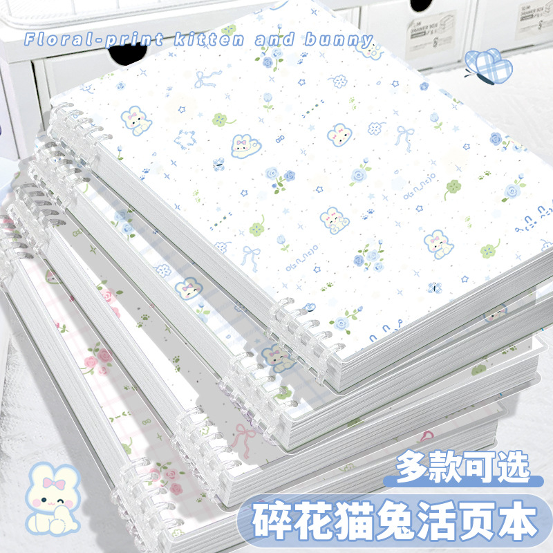 B5碎花猫兔活页线圈本可拆卸笔记本线圈本可爱A5记事本子学生手账