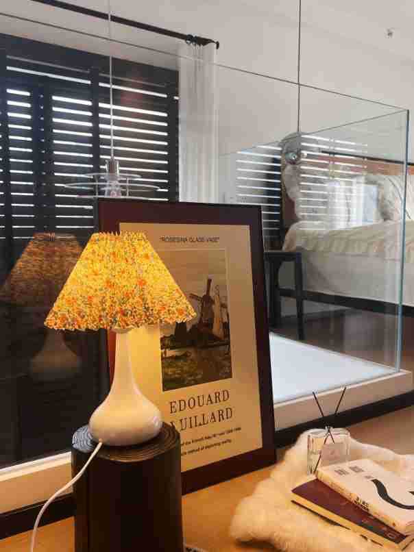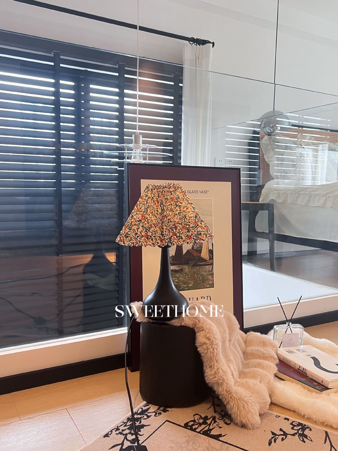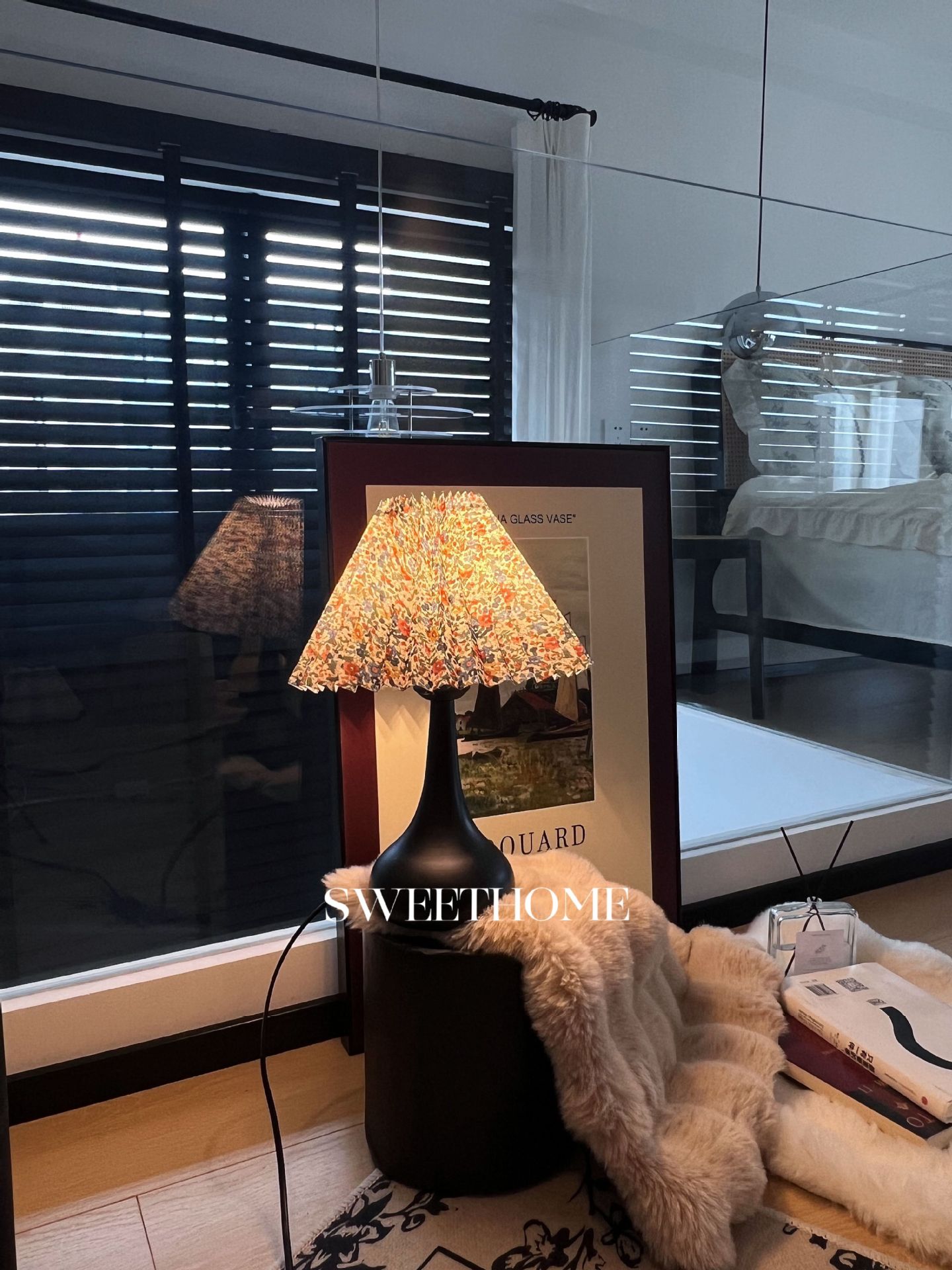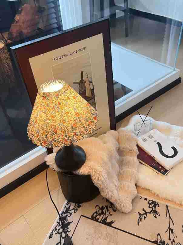 アメリカンスタイルの小さなテーブルランプ、寝室のベッドサイド、レトロなフレンチカントリー風、小花柄の装飾、雰囲気のあるインテリア照明、ベッドサイドテーブル用