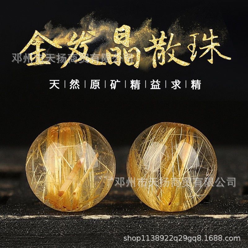 天然ブラジル金髪晶丸珠チタン晶散珠diy半製品多宝手串ネックレス編み水晶材料