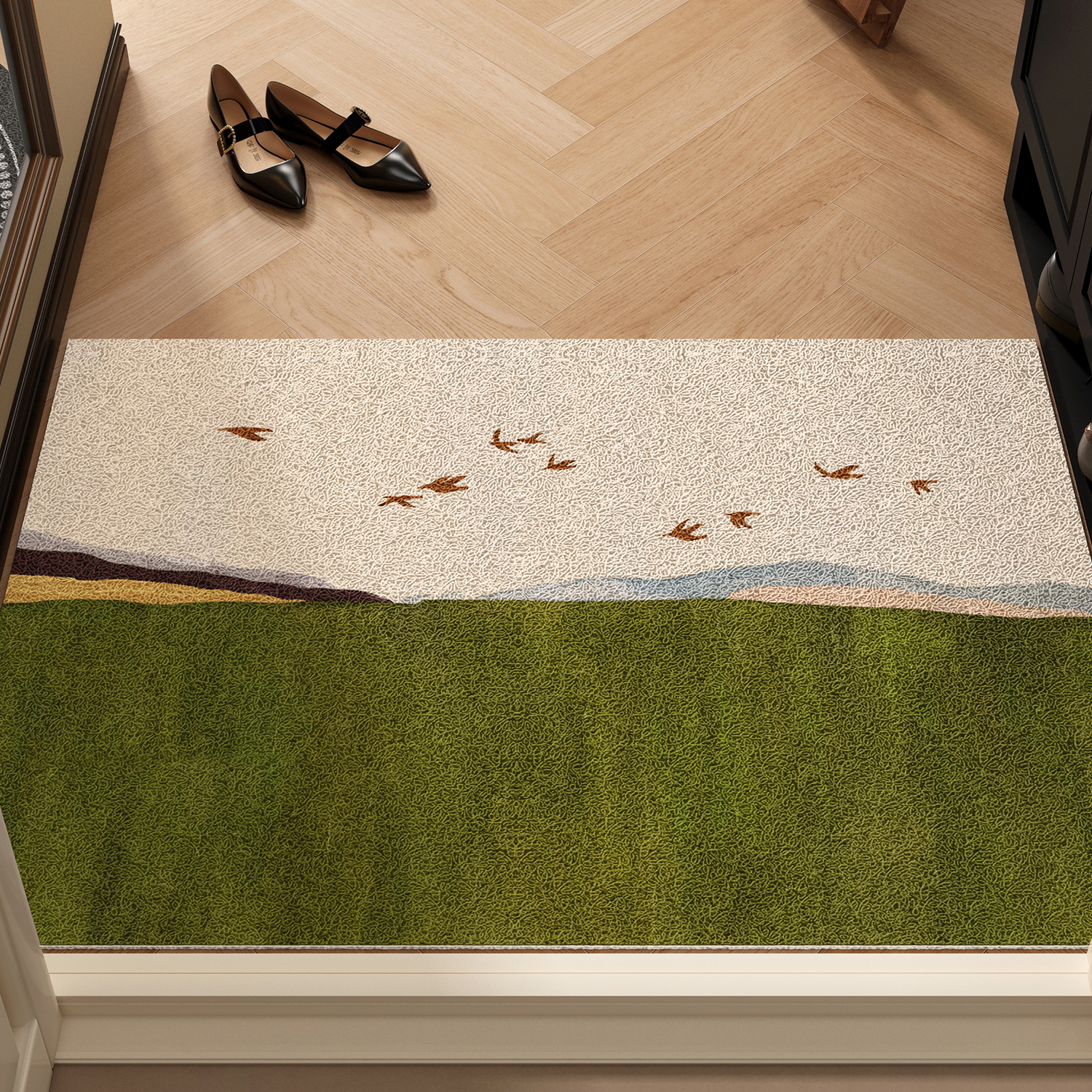 2025新款简约风入户门丝圈地垫轻奢感地毯进门口绿色门垫脚垫子
