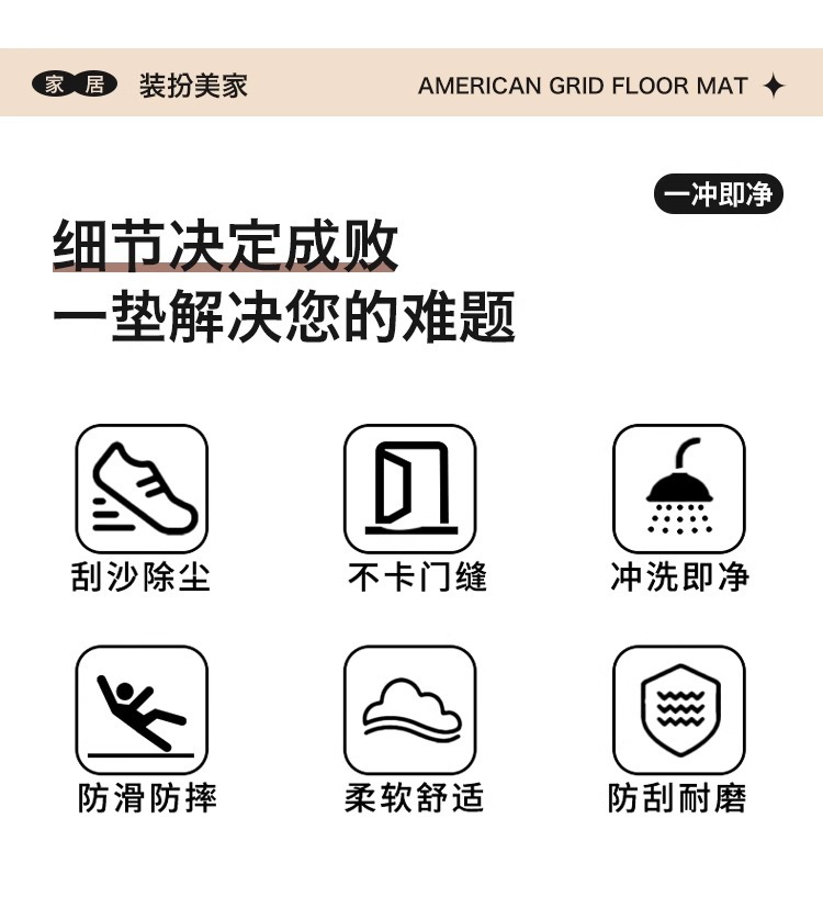 入户门地垫门口进门蹭土除尘家用脚垫子耐脏易打理耐磨水晶绒门垫