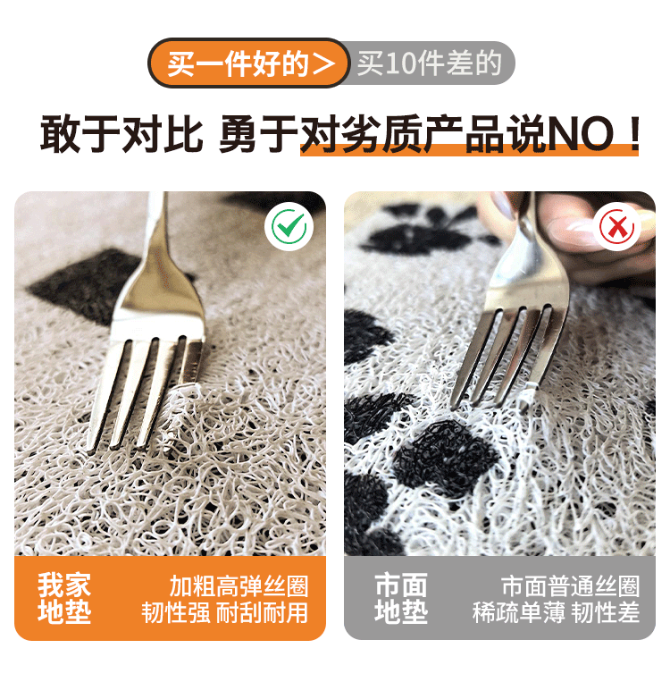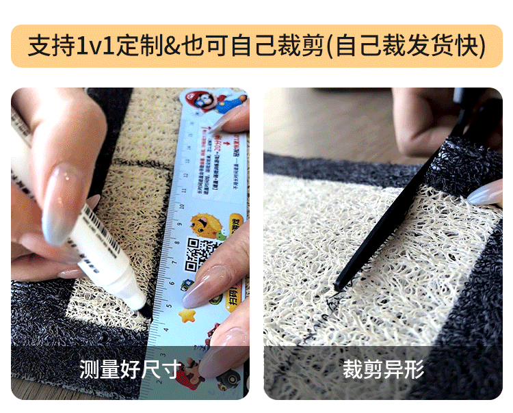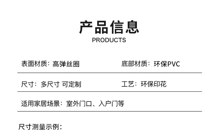 尺寸 40*60cm【丝圈】,50*80cm【丝圈经久耐用 不易断裂】,60*90cm【丝圈蹭土防滑 无惧泥沙】,60*120cm【丝圈玄关置鞋可用地垫】,80*100cm【丝圈玄关置鞋可用地垫】,80*120cm【丝圈店长推荐 80%客户选择】,90*120cm【丝圈玄关置鞋可用地垫】,100*120cm【丝圈防水防尘 简单打理】,120*140cm 【丝圈黄金厚度 柔软高弹】,120*160cm【丝圈保护地板 品质高档】