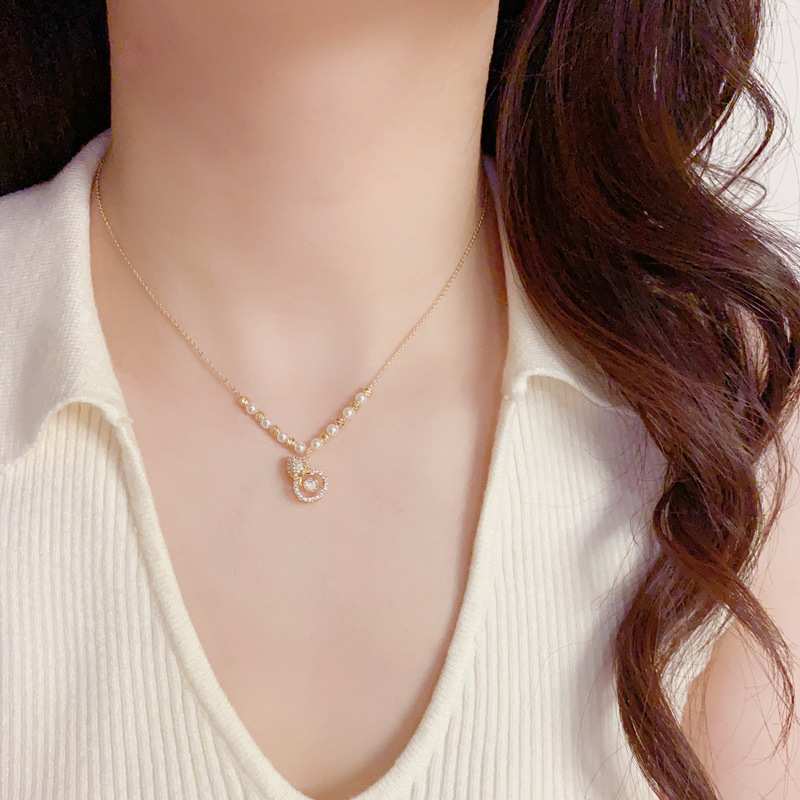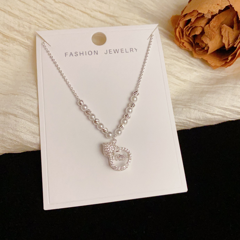 夏の新しいファッションデザインパールビーズフルダイヤモンドひょうたんペンダントネックレスパーソナライズされたライト高級多用途鎖骨チェーン
