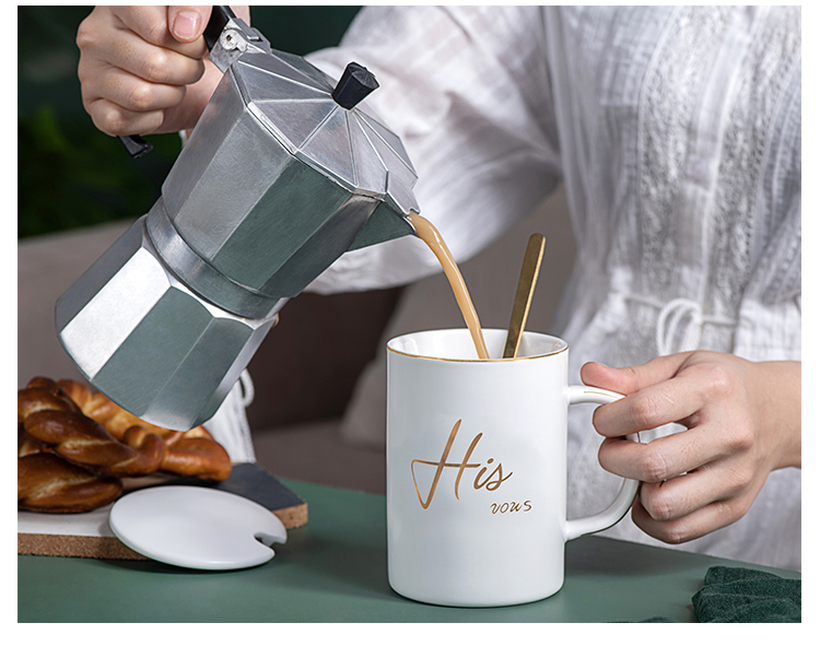 创意陶瓷杯子 马克杯带盖勺 搪瓷杯水杯 ins简约大容量牛奶咖啡杯