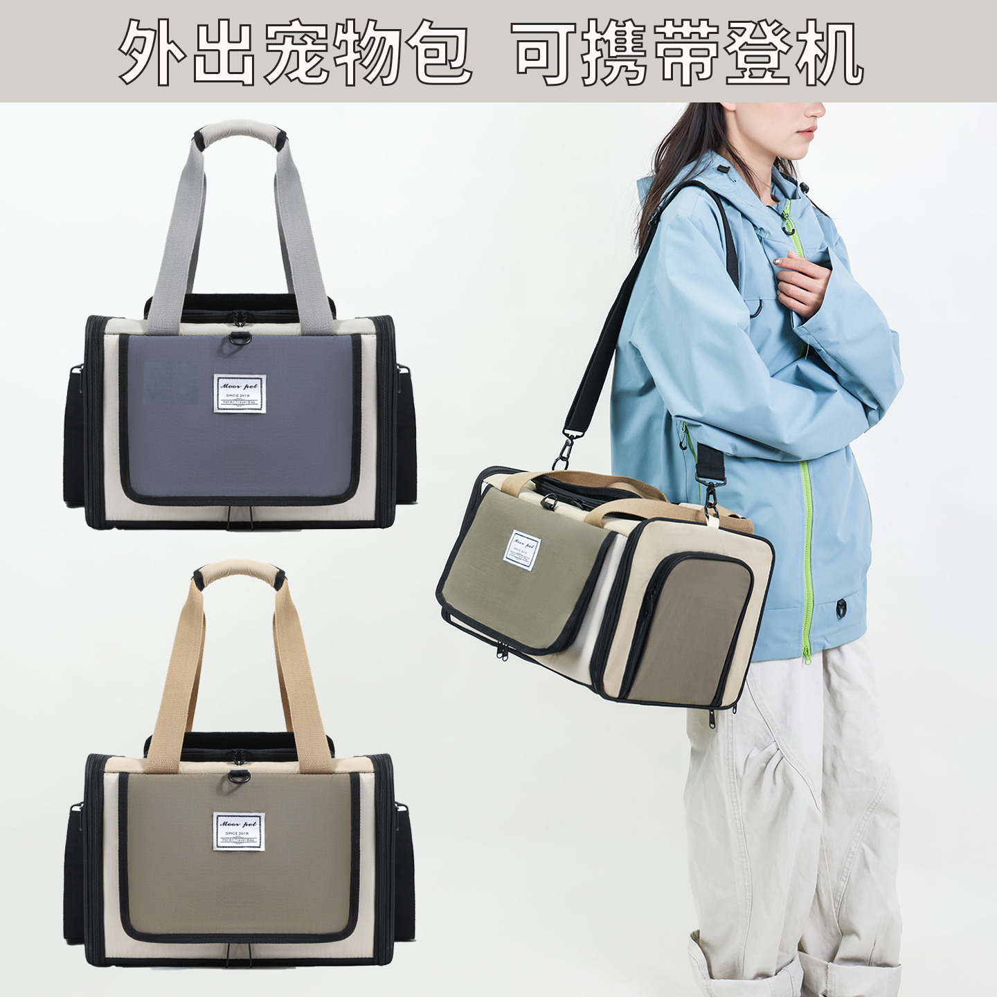 moorpet/摩宠猫包狗包便携单肩手提斜挎宠物包大容量宠物航空包