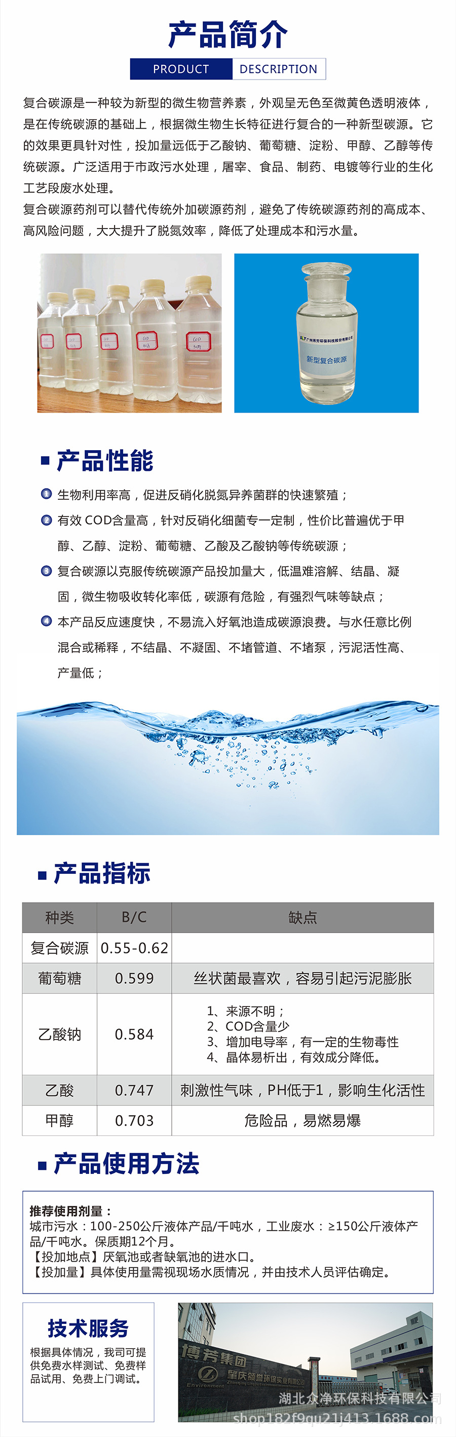 複合炭素源 COD 高速分解剤 デノキシレーション炭素源 下水処理炭素源サプリメント卸売供給