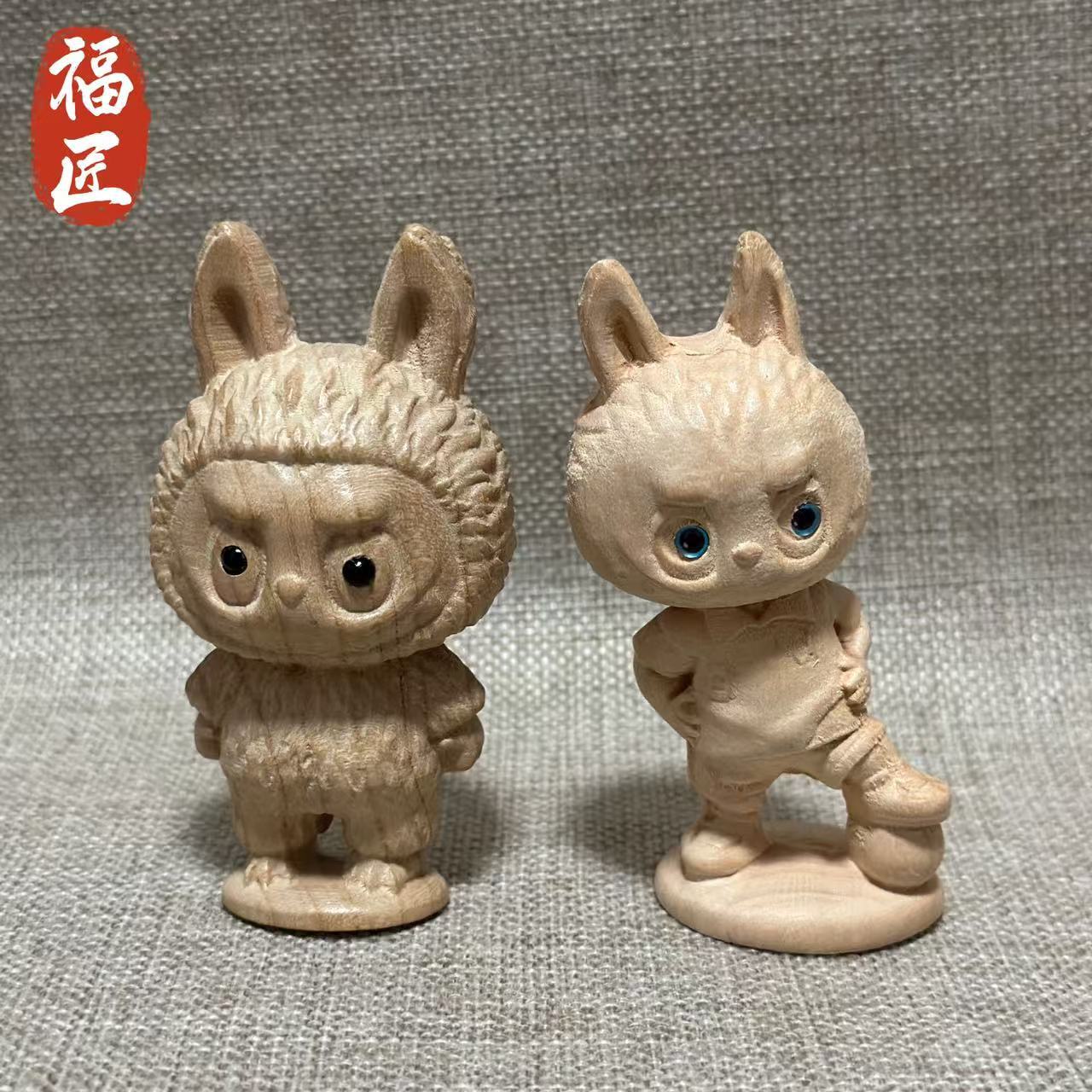 拉布布桃木雕刻工艺品创意木质摆件手把件可爱儿童玩具拉布布