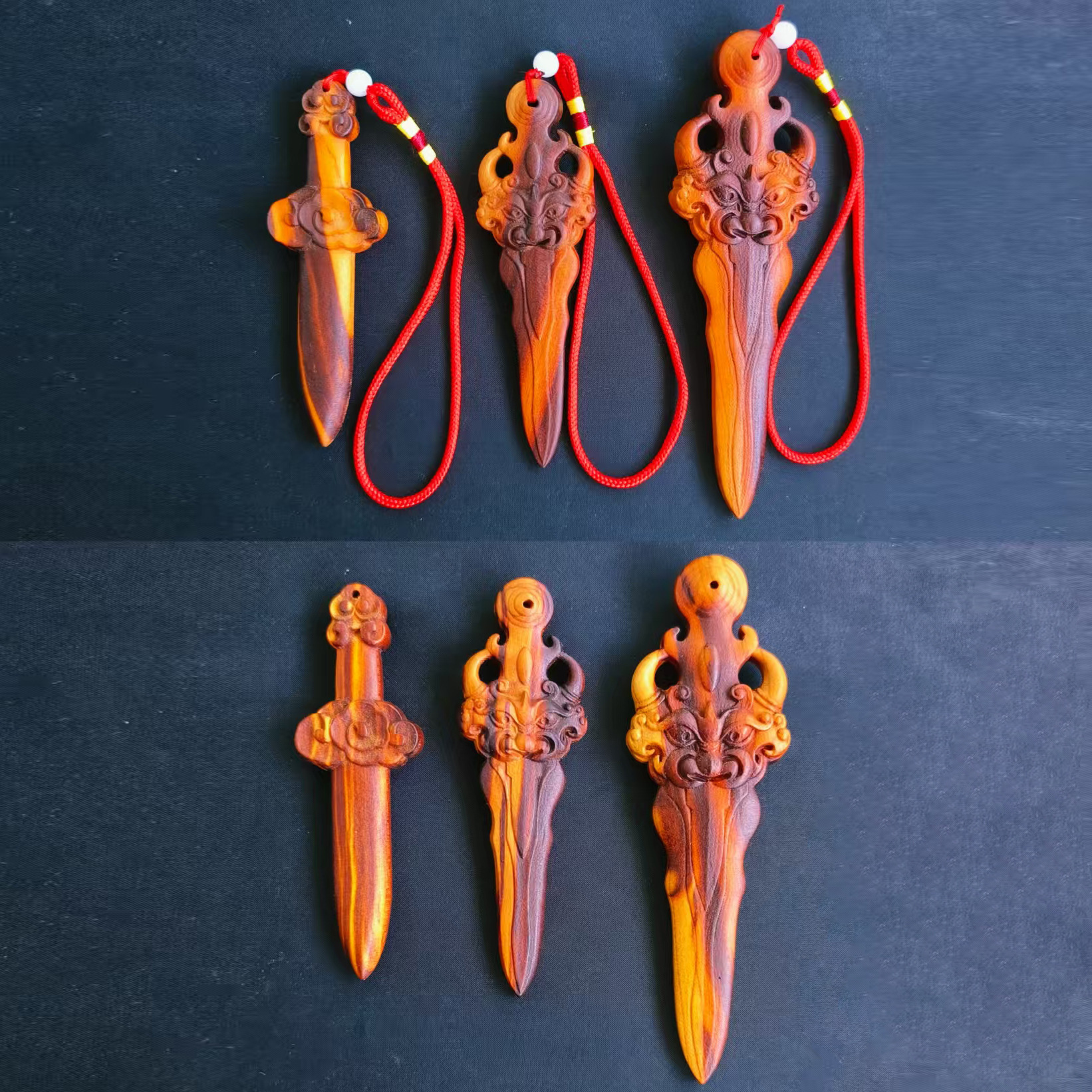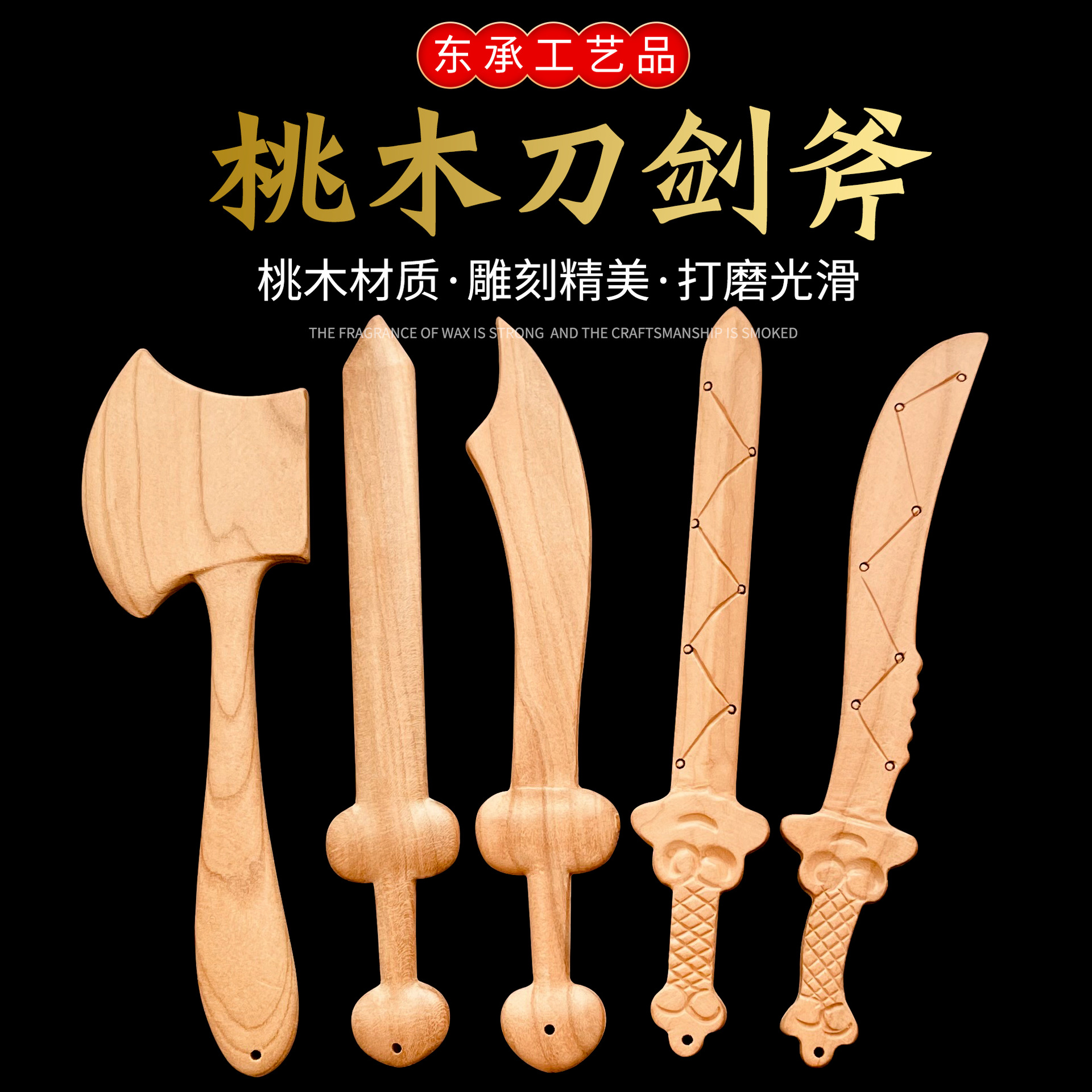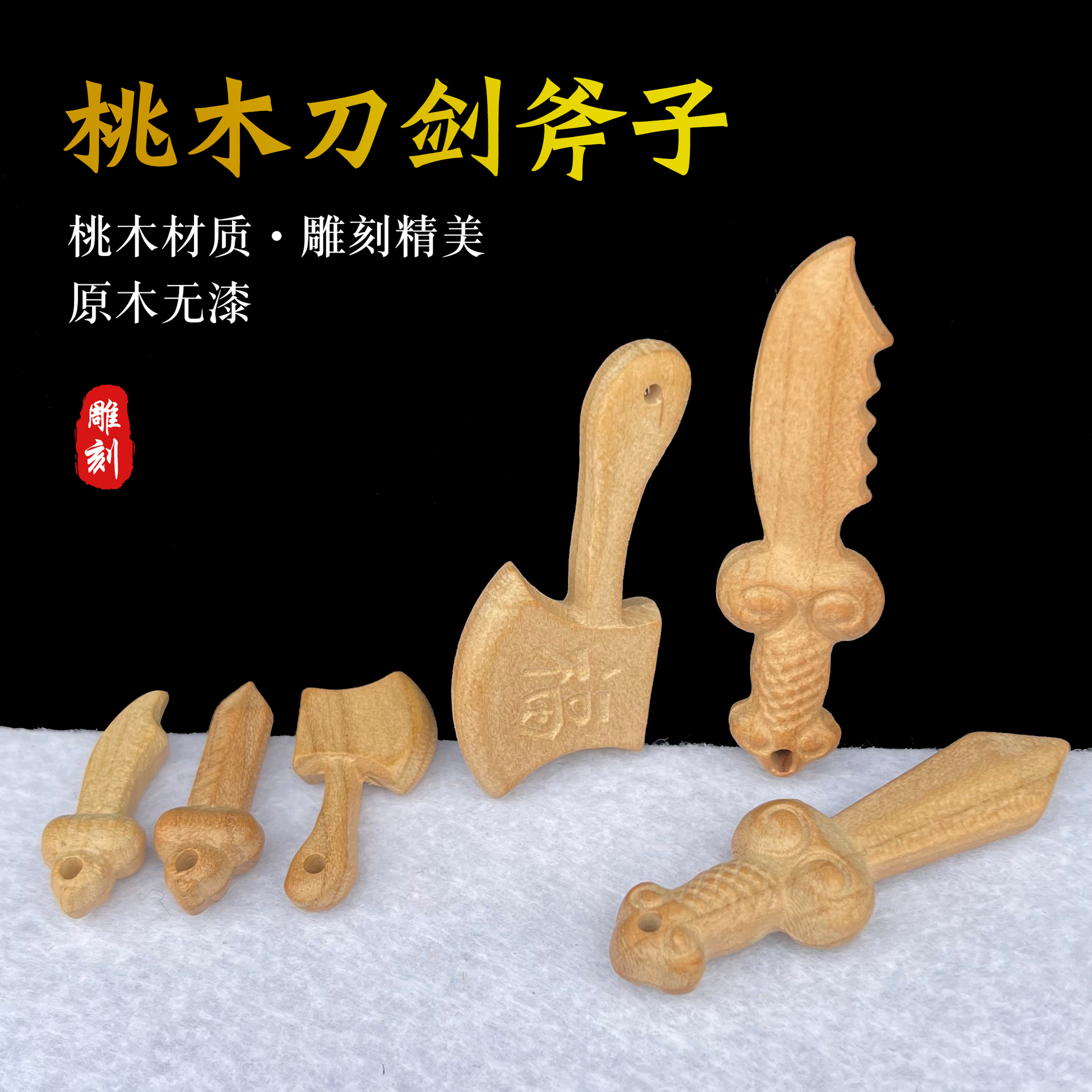 七星ピーチウッドソードオリジナルカラー彫刻ピーチウッドペンダント大、中、小の剣子供のおもちゃクラフトピーチウッドソード卸売