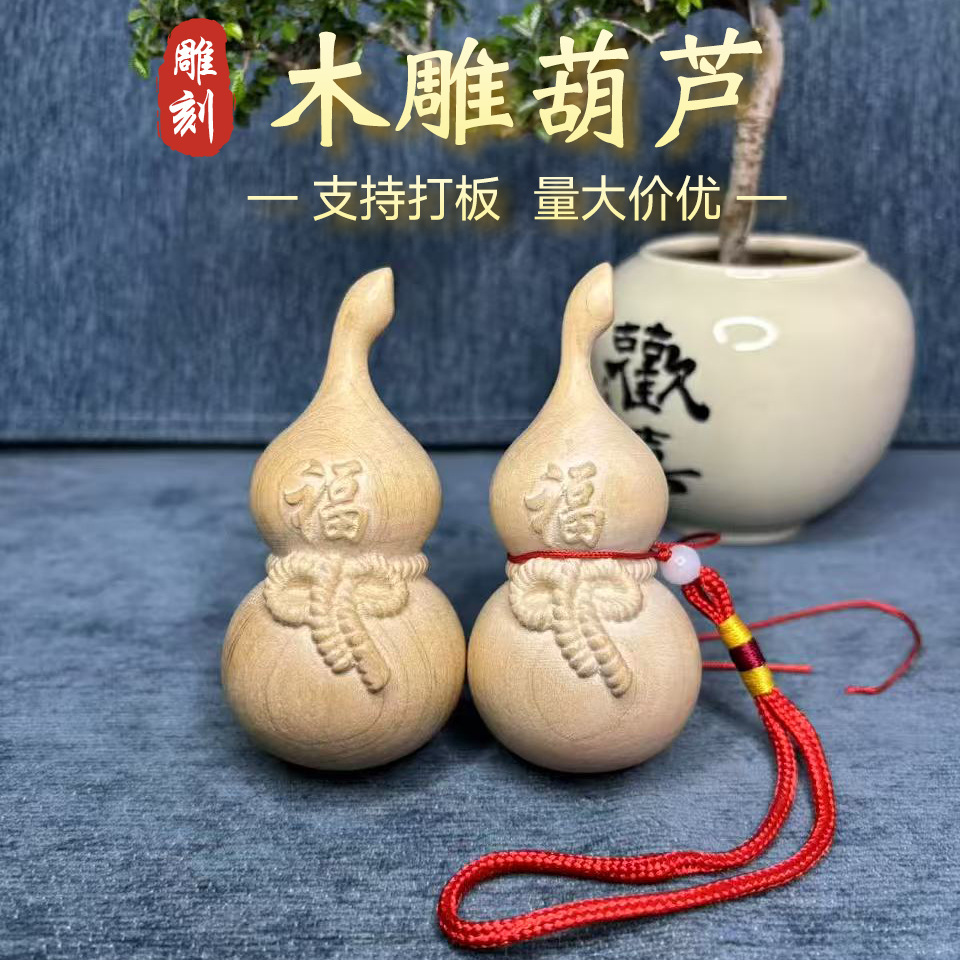桃の木のヒョウタンのペンダントの取っ手の件の実木の手は小さいヒョウタンの木製の工芸の置物の木の彫刻のヒョウタンの卸売りを捻ります。