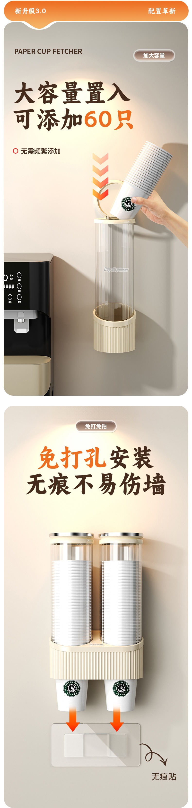 パンチフリー使い捨てカップリーダー自動ウォーターディスペンサーカップホルダー防塵収納ラック壁掛けカップ