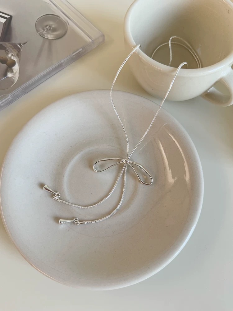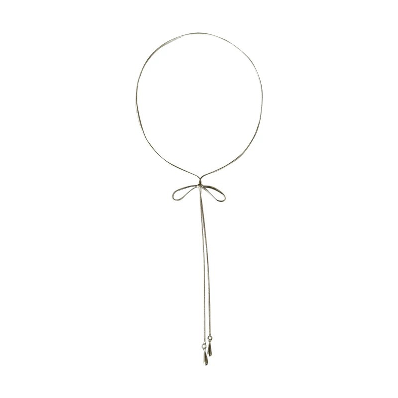 颜色 银色抽拉蝴蝶结项链【钛钢链】