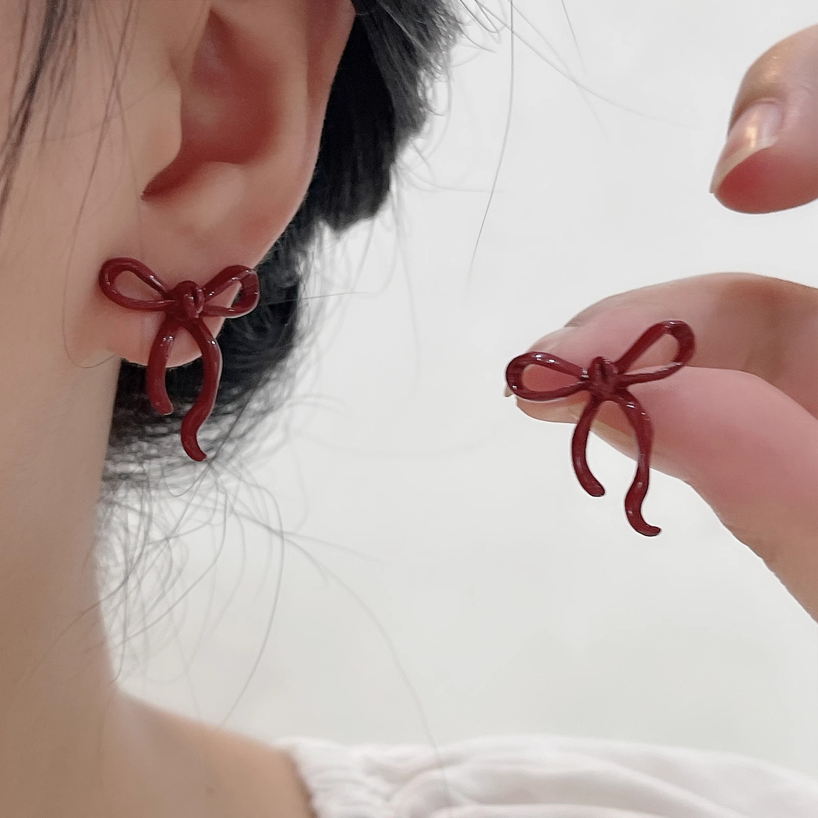 复古港风气质安可拉红蝴蝶结耳钉女2025新款小众高级感耳环耳饰品