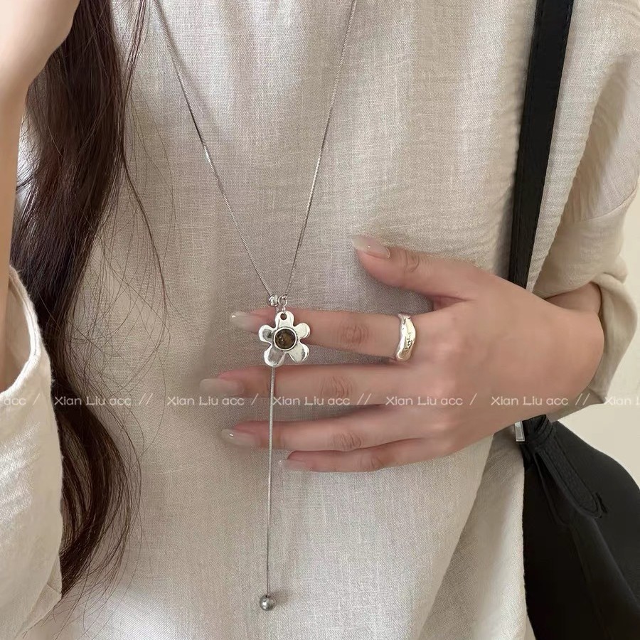 韩系简约花朵爱心吊坠项链时尚个性冷淡风毛衣链气质小众女高级感