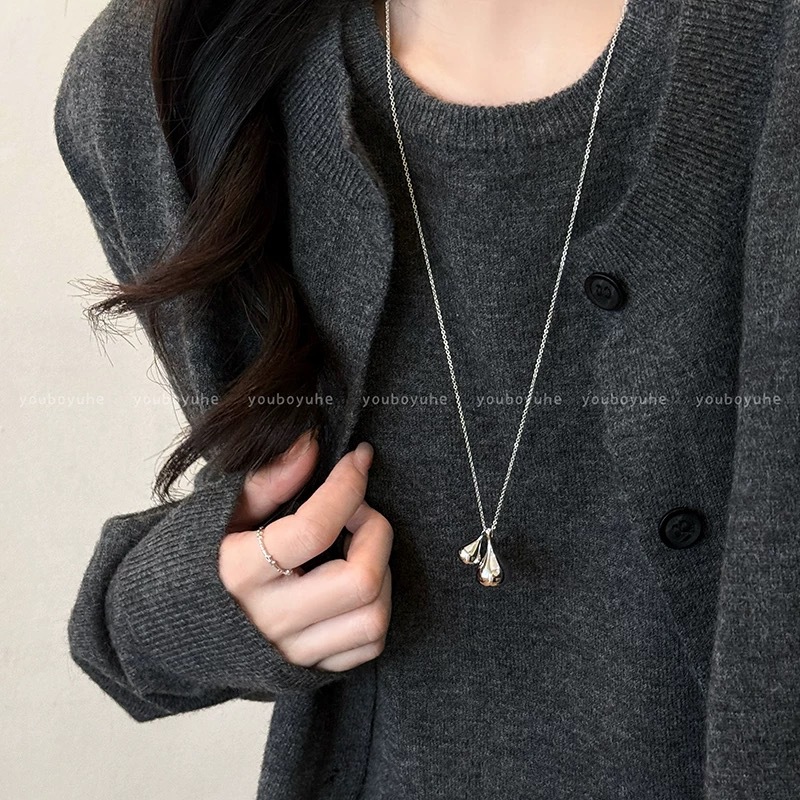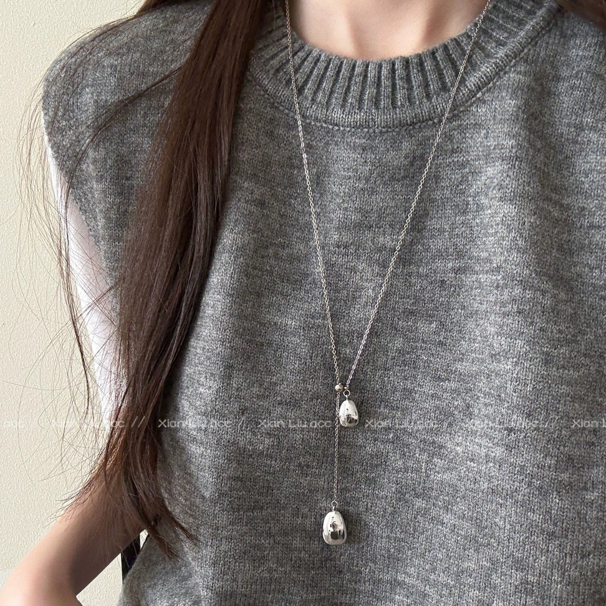 银色水滴双吊坠项链女款2025新款长款毛衣链简约百搭高级感配饰品