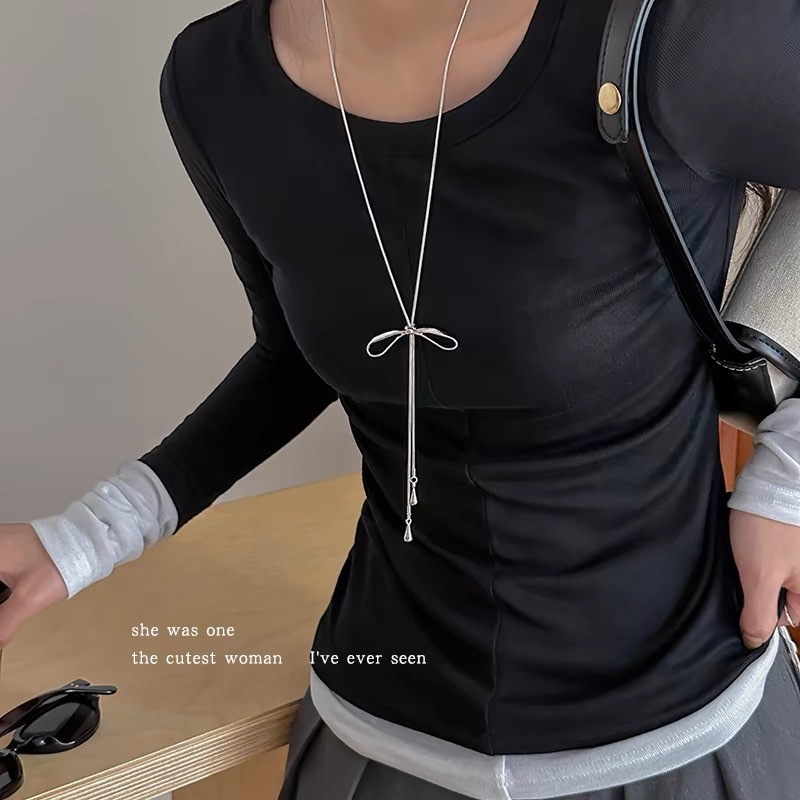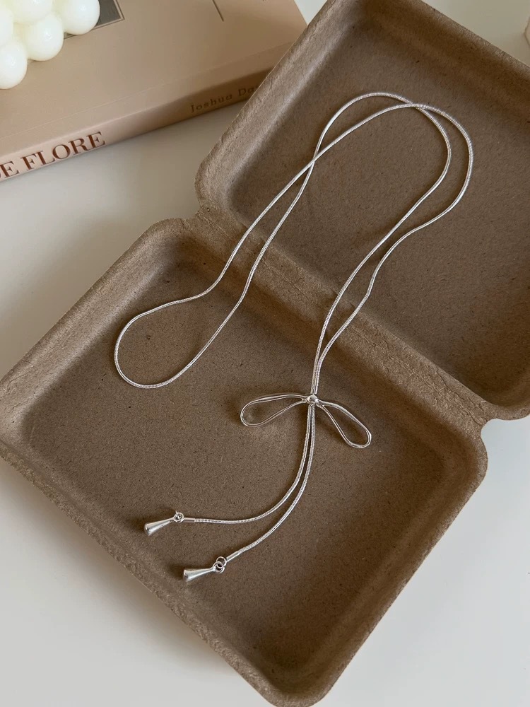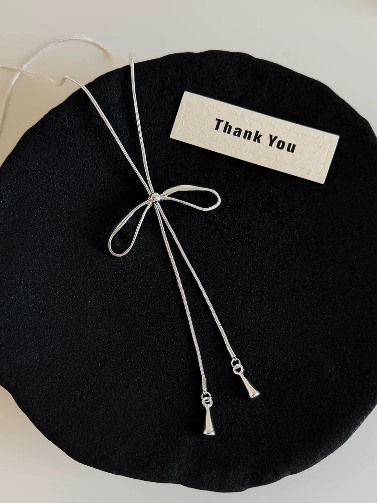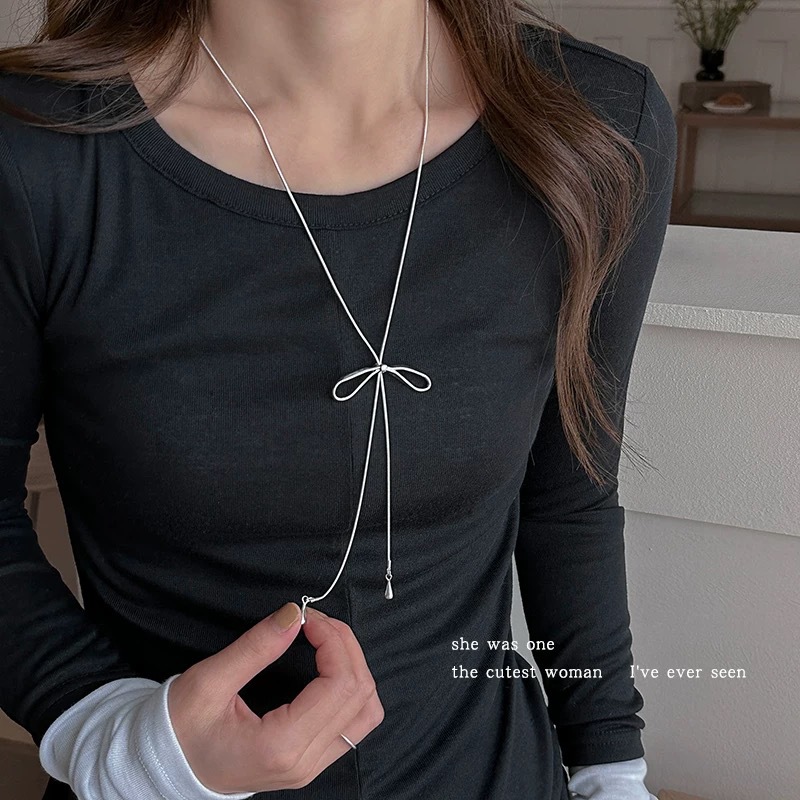 甜美简约抽拉蝴蝶结项链女韩系小众设计感长款卫衣链配饰百搭新款